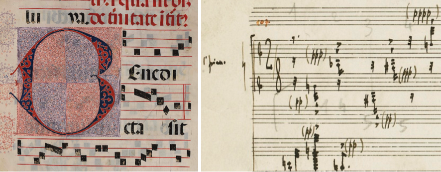 La escritura musical ha sido un quebradero de cabeza desde las primeras intentonas griegas por preservar una melodía determinada, hace más de dos mil doscientos años. Habría que empezar por aclarar, por muy obvio que parezca, que una partitura musical es un esquema más o menos detallado de una obra musical, y que dicho esquema dista mucho de ser completo. Además, salvo excepciones muy concretas, la partitura es más difusa cuanto más atrás nos vayamos en el tiempo. La recuperación de, pongamos por caso, una zarzuela chica de principios del siglo XX requiere menos despliegue de recursos y tiempo (por lo general) que un oratorio del barroco medio. Los lenguajes escritos evolucionan y el musical también lo ha hecho. Una recuperación parte de un proceso previo de selección realizado por interlocutores válidos y donde se separa el grano de la paja, porque como decía L. A. González Marín, “antigüedad no es sinónimo de calidad”. Luego hay que “traducir” el idioma a unos estándares que cualquier músico actual entienda: poco tienen que ver las notaciones musicales de un gradual franciscano de principios del siglo XVI (abajo, izquierda) con Structures de Pierre Boulez (abajo, derecha).