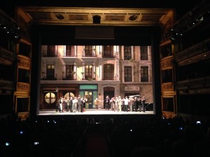 Teresa Berganza contemplaba el ensayo de sus alumnos en un palco junto a la esposa de Miguel Ángel Gómez Martínez cuando, en la mitad del primer acto, empezó a sonar en la radio del taller mecánico de Joaquín aquella lejana grabación. Inmediatamente Clarita, la joven Inés Ballesteros, anunciaba que deseaban rendir homenaje a una artista española capaz de cantar a Mozart, Rossini y Bizet. La cara de la artista cambiaba de expresión y se la tapaba con una mano mientras el público que asistía al ensayo irrumpía en una interminable ovación. En el escenario comenzaron a aparecer compañeros y amigos: María Bayo, a quien ayudó en sus inicios cuando llegó del pueblo a su antigua casa escurialense, Antón García Abril, Ruggero Raimondi, inolvidable compañero en el “Don Giovanni” de Losey o Luigi Alva, tantas veces su tenor el “El barbero de Sevilla” o Luz Casal, la única a quien Berganza agradeció su presencia de forma individualizada: “Os adoro a todos, pero con Luz tengo una pasión especial” y añadía “Es una de las emociones más grandes de mi vida. Hasta mis hijas y mis nietas me han engañado”. Cariñosa aclamación interrumpida para volver a tomar el micrófono y agradecer al público su afecto: “Sin él los artistas no somos nadie. A mi el público siempre me ha querido mucho y el de este teatro me aplaudió a rabiar a mi vuelta del exilio”. “Tened preparado un médico porque no se si resistiré la emoción”, terminaba.