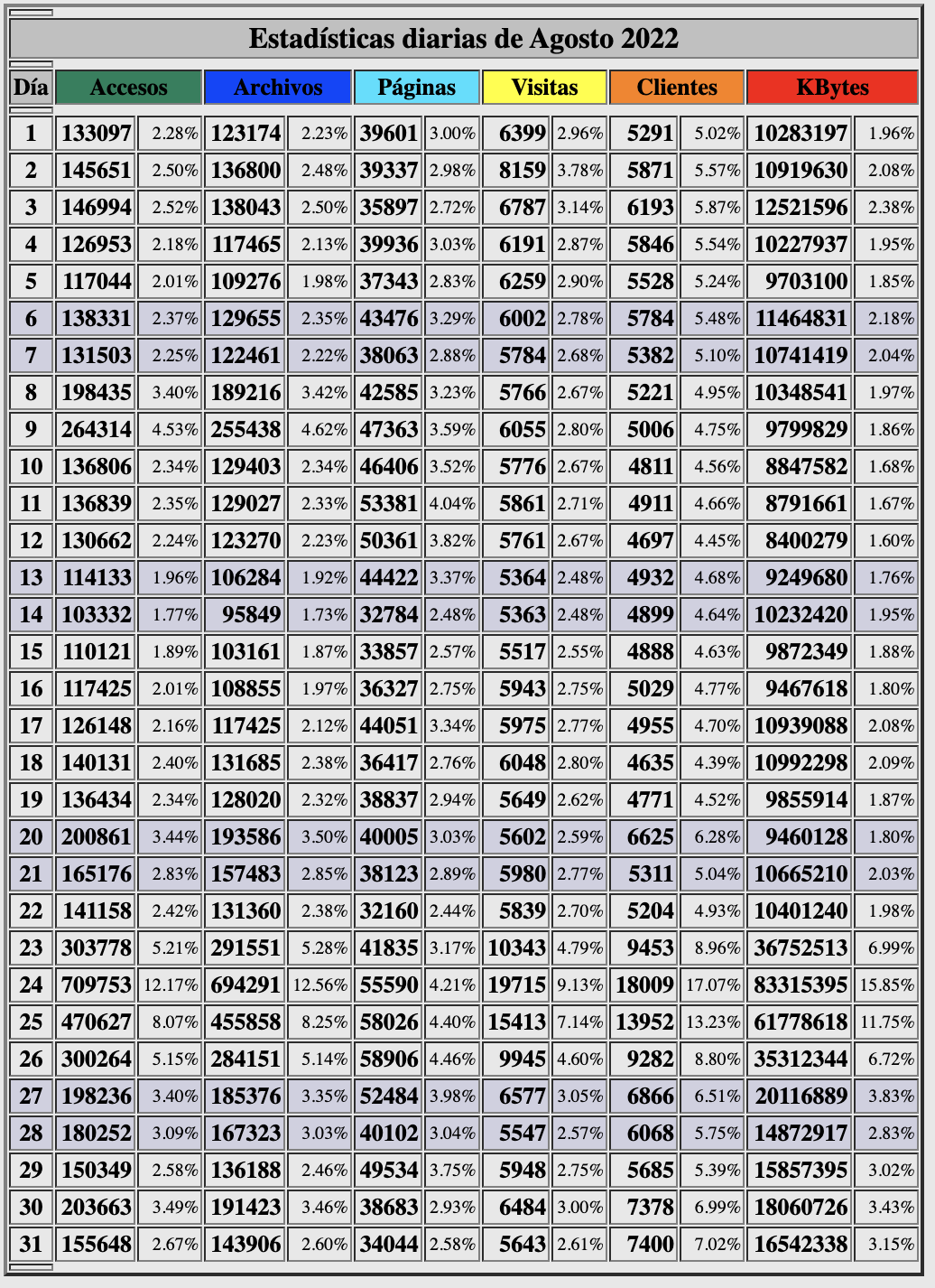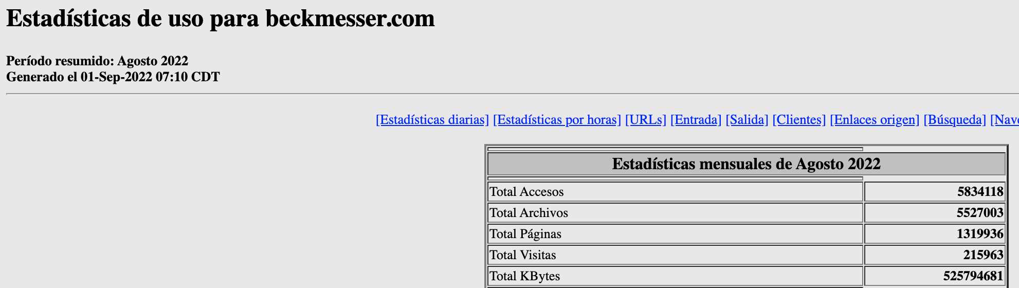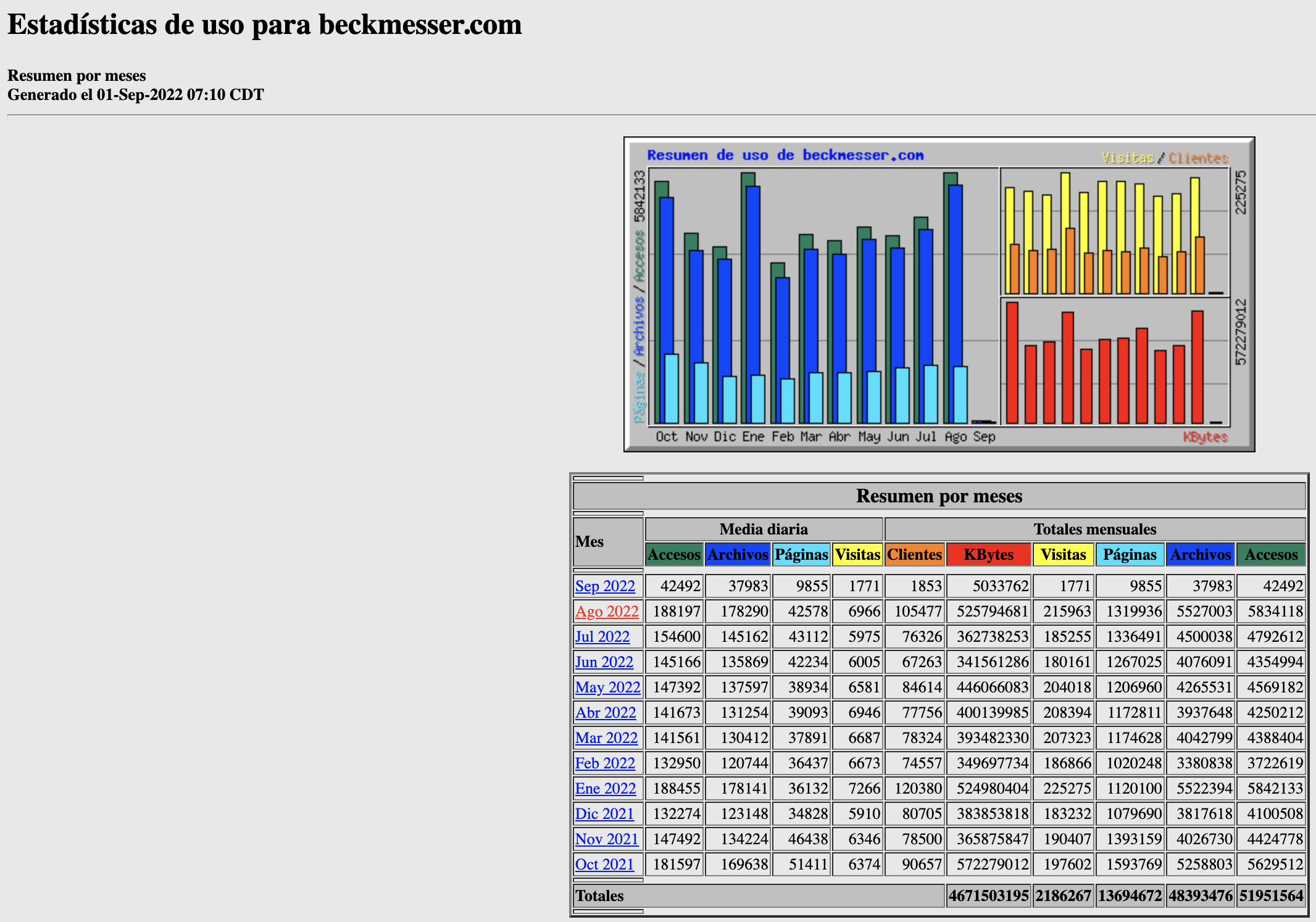 Beckmesser, la web de música clásica más influyente, obtuvo un promedio de 6.966 visitas diarias, 208.394 visitas únicas y 1.319.936 páginas leídas en agosto de 2022.