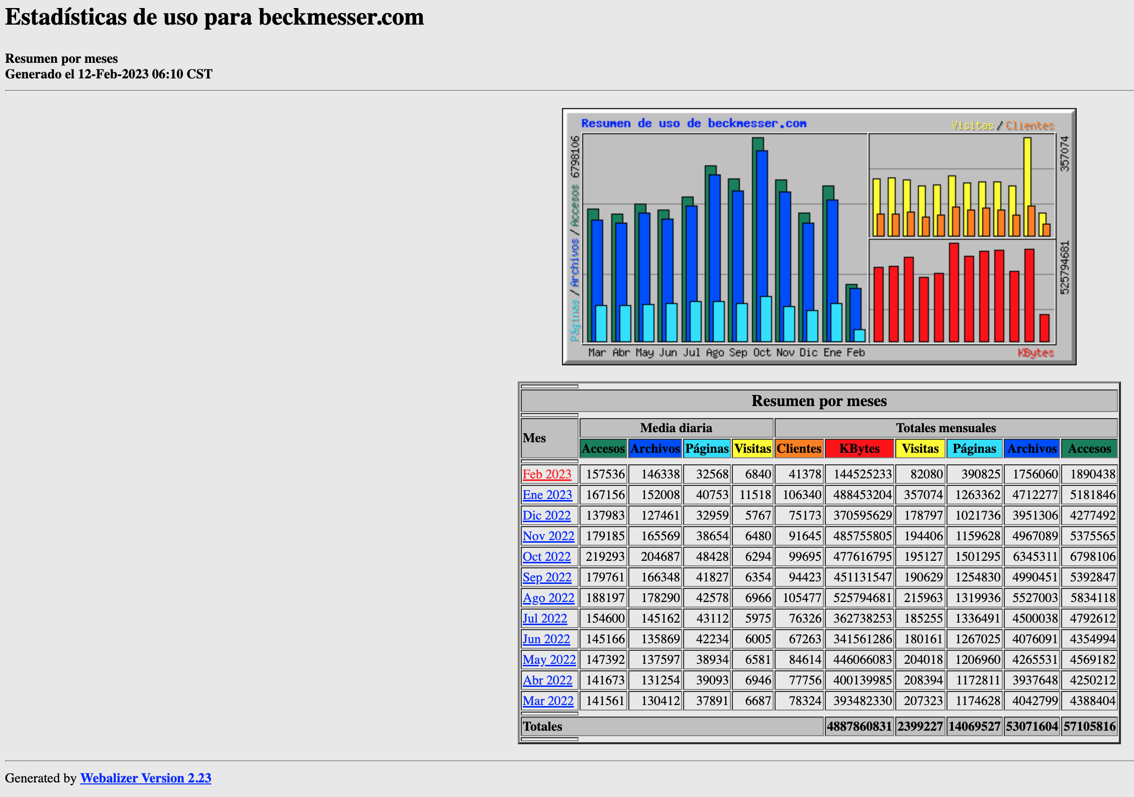 Estadísticas de Beckmesser enero 2023