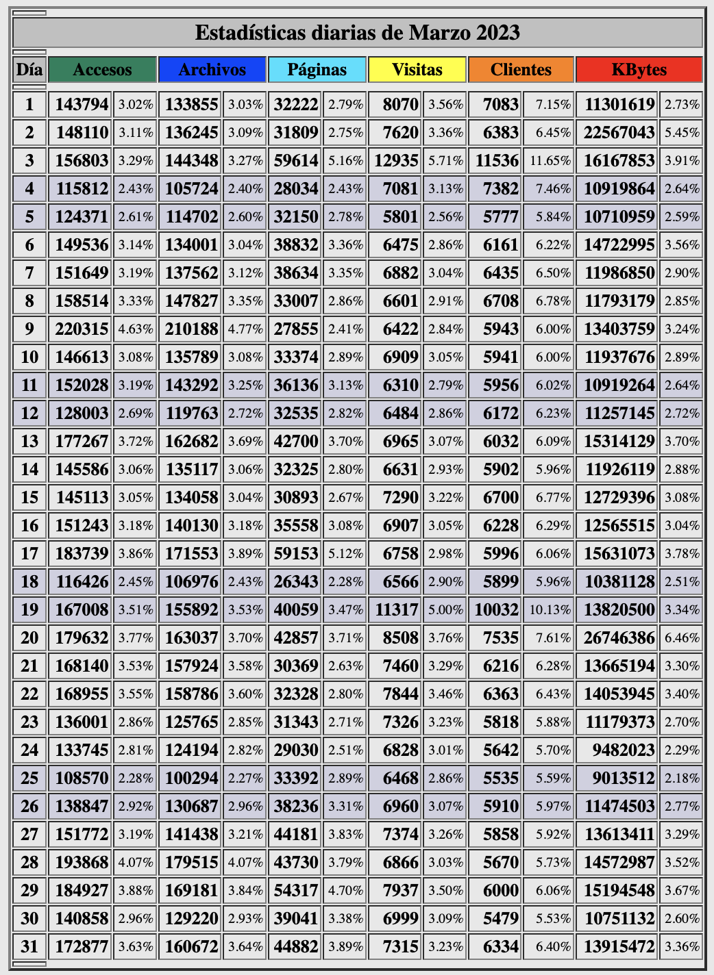 Estadísticas de Beckmesser marzo 2023