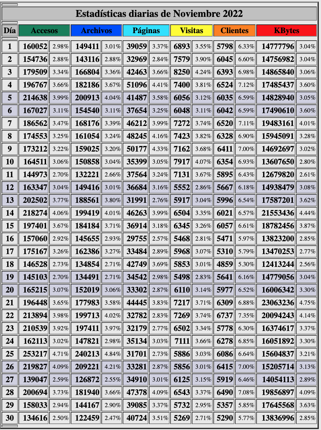 Beckmesser, la web de música clásica más influyente con más de 5 millones de visitas en los últimos dos años y medio, obtuvo un promedio de 6.480 visitas diarias, 194.406 visitas únicas y 1.159.628 páginas leídas en noviembre de 2022.