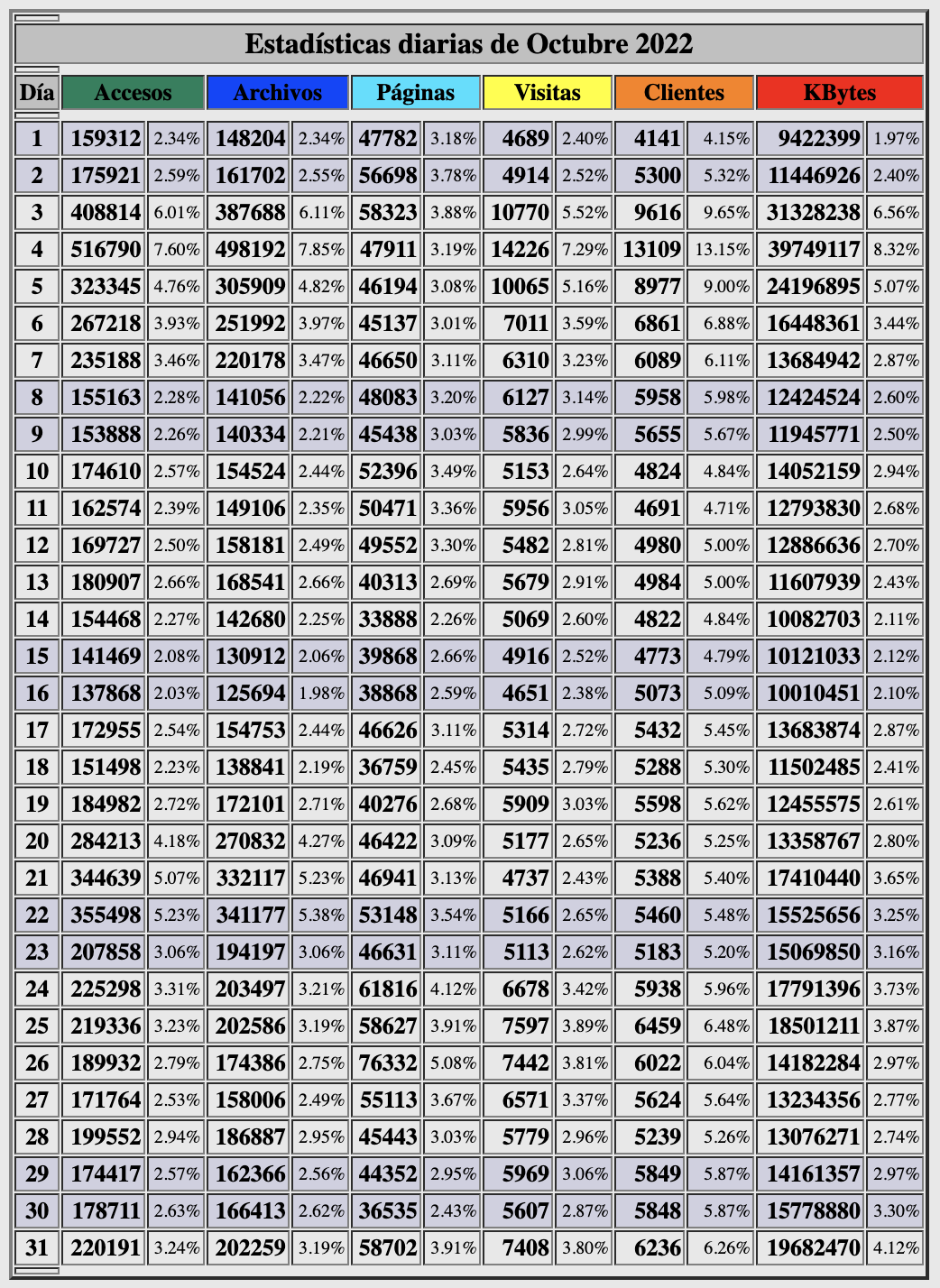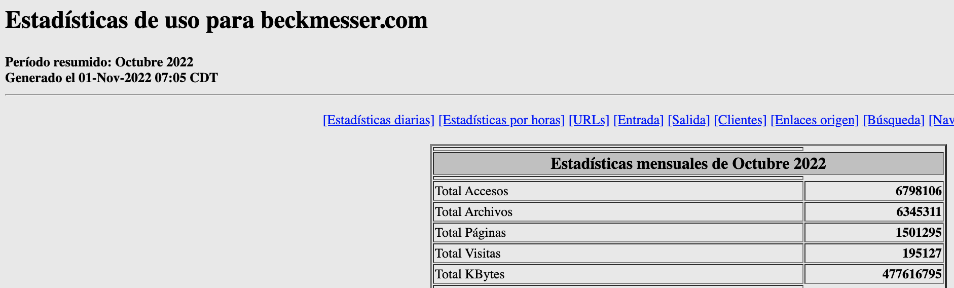 Beckmesser, la web de música clásica más influyente con más de 5 millones de visitas en los últimos dos años y medio, obtuvo un promedio de 6.294 visitas diarias, 195.127 visitas únicas y 1.501.295 páginas leídas en octubre de 2022.