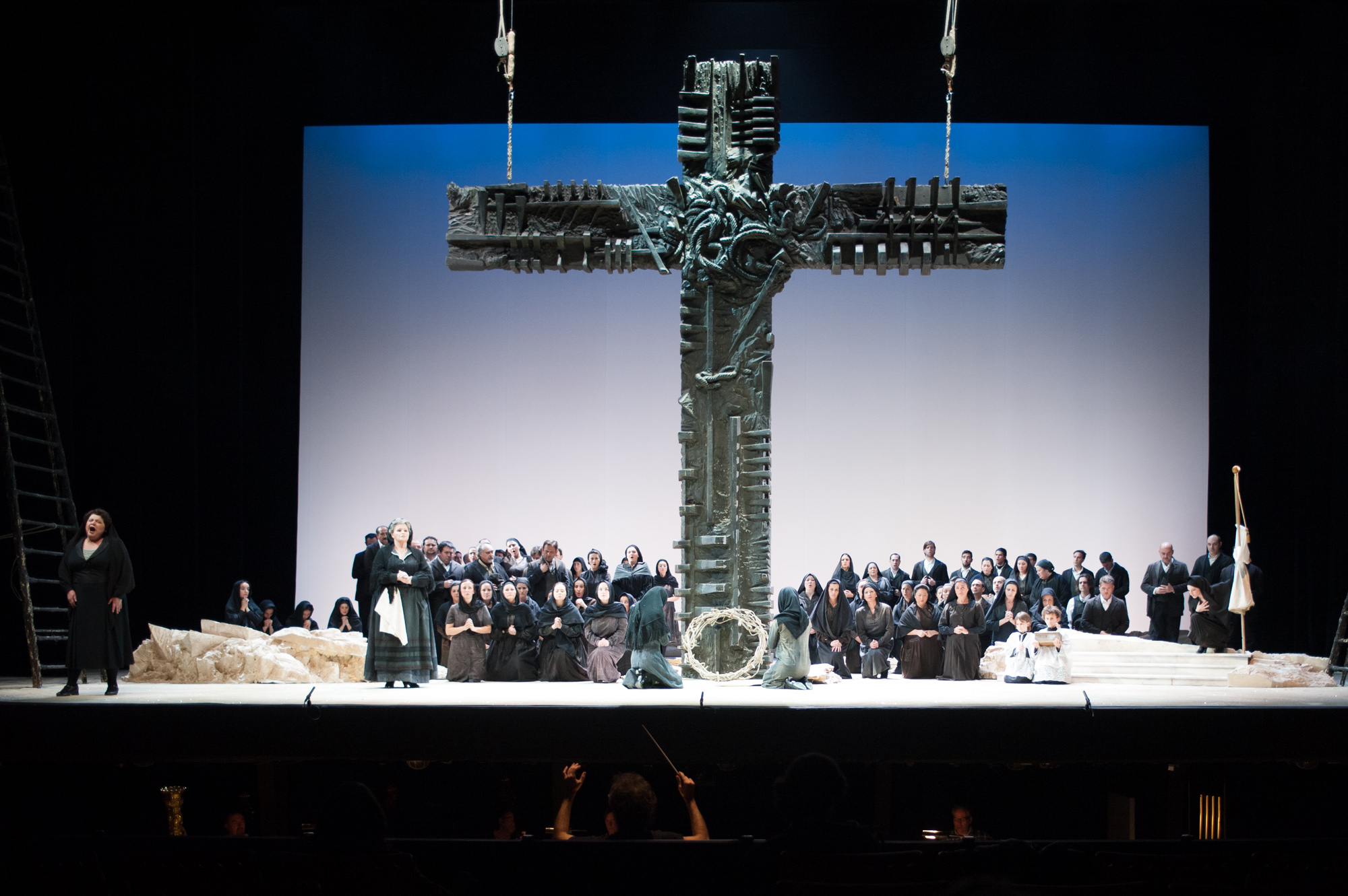 El espectáculo escénico es una nueva producción de la Scala en coproducción con el Covent Garden de Londres y la Ópera de Toronto, llevando la firma de Robert Carsen y fue estrenada el mes pasado con gran éxito. Es una de esas raras producciones donde se aúnan la belleza estética con una extraordinaria dirección escénica, en la que la fidelidad a libreto y música es digna de elogio.