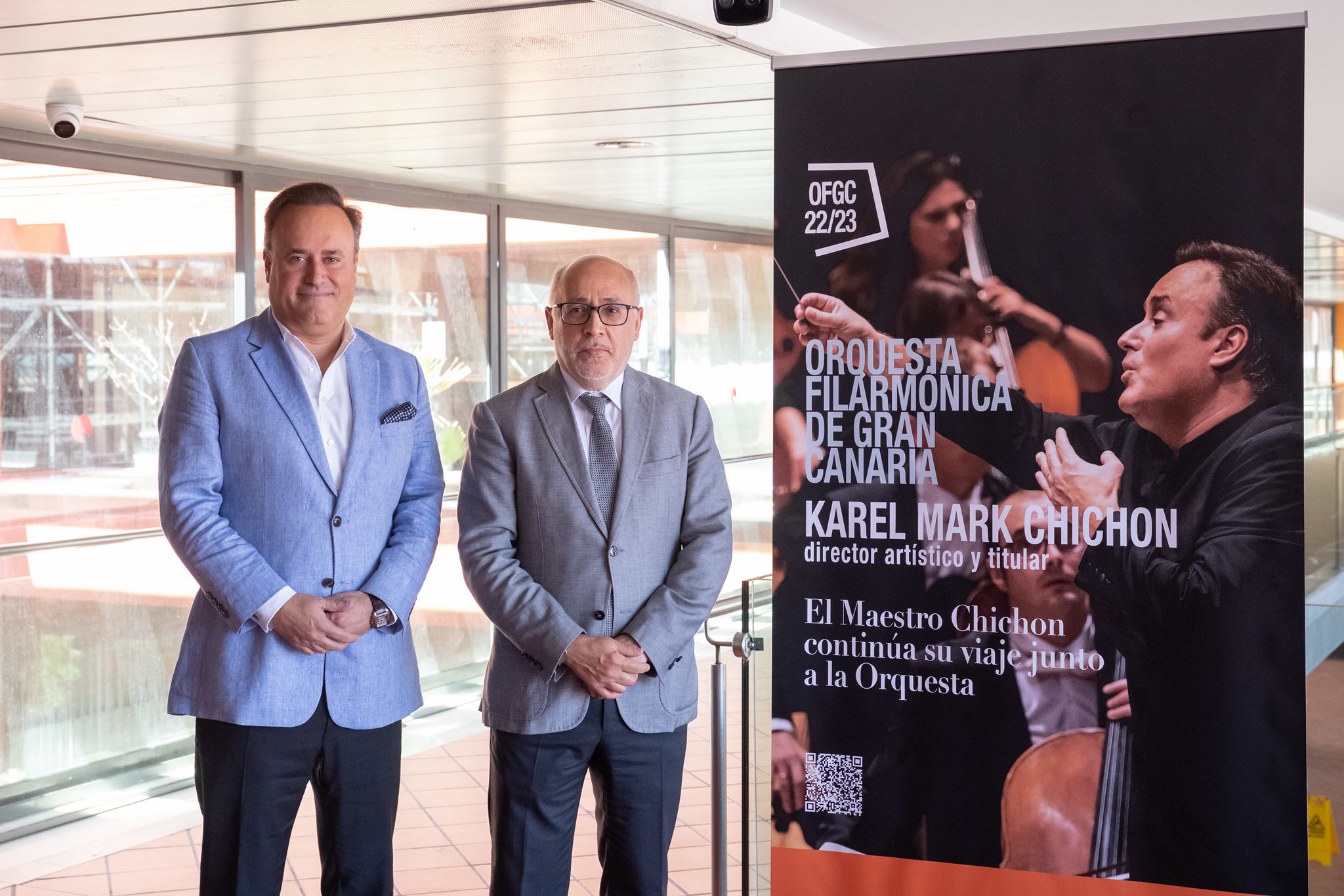 El presidente del Cabildo de Gran Canaria, Antonio Morales, y el director artístico y titular de la OFGC, Karel Mark Chichon, han presentado la temporada de abono 2022-2023 de la Orquesta Filarmónica de Gran Canaria. En su intervención, el presidente destacó la buena forma de la Filarmónica, “que ha aumentado considerablemente su presencia en la isla con nuevos proyecto; ha reforzado su prestigio y reconocimiento internacional gracias a los grandes nombres que han colaborado con ella, que repiten y continúan estrechando sus lazos con la orquesta; y la grabación de un CD para Deutsche Grammophon con el tenor Jonathan Tetelman y dirección de su titular, Karel Mark Chichon”. “Ante el evidente buen estado artístico de la Orquesta y para dar continuidad al proyecto, truncado durante dos años por la Covid y agentes extramusicales, la Fundación ha decidido prorrogar la titularidad del Maestro Chichon durante dos temporadas, la 2023/2024 y la 2024/2025”, concluyó el Morales.