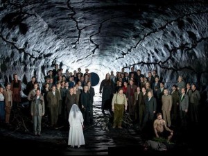 Se trata de una nueva producción que fue estrenada durante el pasado mes de Enero y que fue bastante mal recibida por la crítica y con buenas razones para ello. Su autor es el director de escena alemán Michael Thalhaimer, que hace una versión muy particular de esta obra maestra de Weber. Como lo que pretende es hacer una producción alejada del ambiente del libreto, toma la decisión de cortar prácticamente en su totalidad los diálogos, ya que harían chirriar en exceso lo que se oye y lo que se ve. Thalhaimer concibe la ópera como un drama oscuro y pesimista, que se desarrolla enteramente en un túnel, que cubre todo el escenario, dejando ver un ojo de entrada al fondo y que es por donde entran en escena los personajes. La presencia de esta escenografía única (Olaf Altmann) hace que la representación se ofrezca no solamente sin diálogos sino también sin interrupción. Aquí todo es oscuro, como si de una pesadilla se tratara. El vestuario se debe a Katrin Lea Tag y es más o menos actual y siempre en tonos muy apagados. La iluminación de Olaf Freese es un elemento importante para la escena, especialmente en la fundición de las balas.