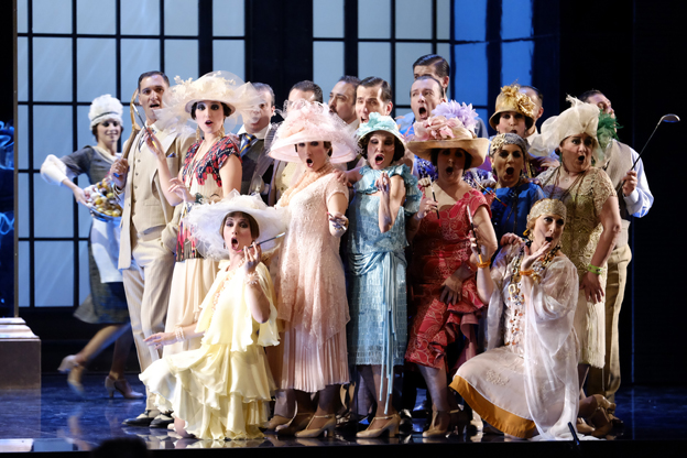 El rico y brillante vestuario de Jesús Ruiz, los esmerados decorados de Daniel Banco, las acertadas coreografías de Nuria Castejón y la movida dirección escénica de Emilio Sagi dotan a ambas producciones de la sal que precisan. Hay más elegancia en el americano y más chabacanería en el español, con algún momento particularmente histriónico.