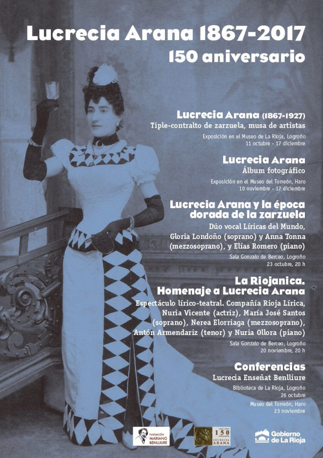 Se cumplen en 2017 los 150 años del nacimiento de la tiple riojana Lucrecia Arana, cantante que estrenó el papel protagonista de una de las zarzuelas más populares del repertorio, ‘La viejecita’, de Fernández Caballero.