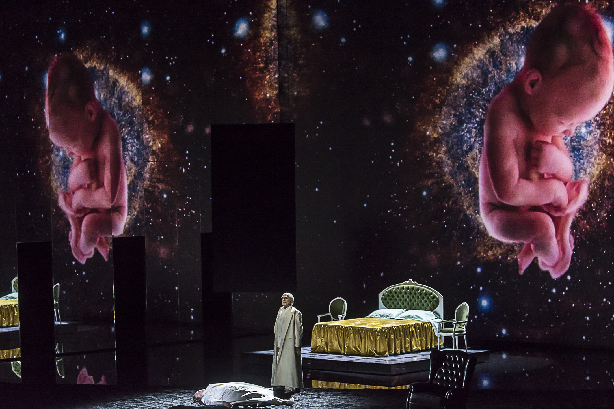 La producción ha servido para la presentación oficial del equipo Livermore&Biondi y también para comprobar que la herencia de Helga Schmidt está viva. Ella contrstó a Livermore como director de escena porque confió en su innegable talento y Livermore soluciona inteligentemente los problemas apuntados de “Idomeneo”. Un gran ciclorama en el que impresionan las tormentas, un suelo dividido en arena de playa y agua donde se baila y chapotea y el traslado de la escasa acción a tiempos siderales le sirven para añadir a la naturaleza como séptimo protagonista y para quitar peso a una partitura escrita como sucesión de recitativos y arias individuales salvo el cuarteto y los coros. Acierta al añadir un par de ballets que permiten un sólo descanso. Schmidt contrató para el Palau el formidable coro de la Generalitat y formó la orquesta que envidiaron todos los demás teatros españoles. Fabio Biondi se encuentra con ellos y les saca todo su jugo en una lectura más viva que detallista. Y, tampoco lo olvidemos, Schmidt creó la Escuela de Perfeccionamiento de donde salen tres de los siete protagonistas.