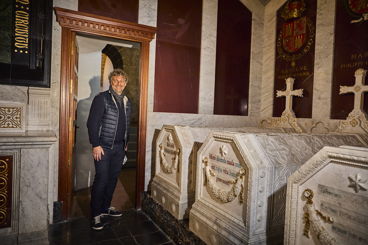 De ahí que fuese oportuno que uno de los grandes protagonistas -si no el mejor hoy- del Don Carlos conociese su verdadera historia visitando su tumba en el Monasterio de San Lorenzo de El Escorial. Se me ocurrió proponérselo por WhatsApp y en cinco minutos me contestó que le encantaba la idea, que modificarían su viaje a Barcelona y que acudiría con Diana Damrau, Helmut Deutsch, familia y un par de amigos. La visita se pudo organizar gracias a la ayuda de Ibermúsica y Patrimonio Nacional.