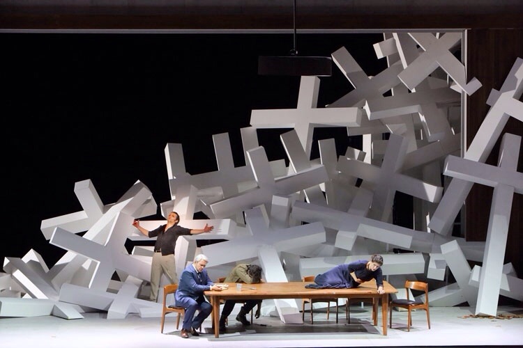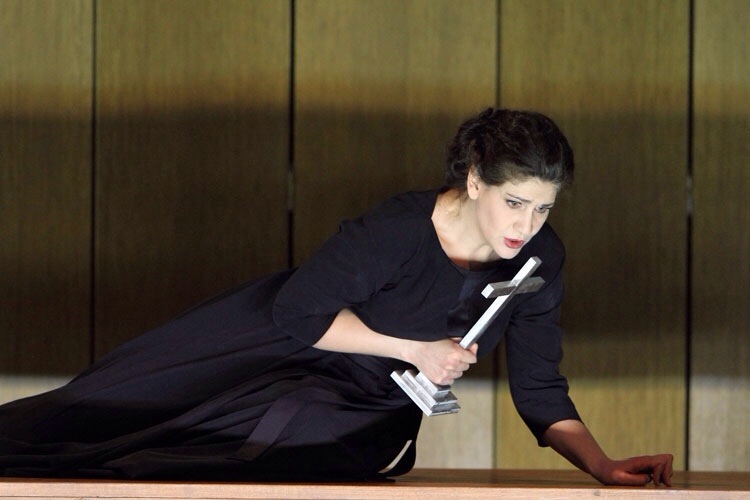 Martin Kusej, uno de los registas de moda, ha diseñado una nueva producción sin interés visual y llena de sinsentidos. Pecado es que suceda a otras tres producciones del mismo título en veinte años y que la mejor siga siendo la más antigua, la de Gotz Friedrich. resulta una aberración convertir una mesa -con las mismas sillas del comedor de mi familia hace 40 años- en protagonista de la escena. Convoca un almuerzo durante la obertura, está a la entrada de la capilla a donde llega Leonora para pedir refugio y a ella se sube, crucifijo en mano, para cantar “Son giunta”. Hace de camilla para el herido Don Álvaro y, en fin, sirve para que Don Carlo apuñale en ella a su hermana Leonora y para que ambos mueran sentados en las sillas. Por cierto, la ermitaña Leonora va vestida con traje de noche y altos tacones, mientras que el padre Guardiano llega al recóndito lugar, todo elegante, con traje, chaleco, corbata e incluso sujetacorbata. Sinceramente no vale la pena perder más tiempo con la escena, aunque no deja de ser sorprendente que toda una Anna Netrebko haya querido debutar “Lady Macbeth” el próximo año en esta ciudad con una producción del mismo Kusej.