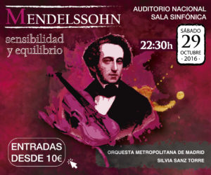 La Orquesta Metropolitana de Madrid y su directora titular Silvia Sanz Torre inauguran el 29 de octubre a las 22:30 la VI temporada del Grupo Concertante Talía (GCT) en el Auditorio Nacional con el concierto Mendelsshon: sensibilidad y equilibrio. El programa incluye dos de las obras más conocidas y populares de este compositor: la Sinfonía nº 4 “Italiana” y el Concierto para violín en mi menor, que será interpretado por la joven violinista Cristina Cubas Hondal, ganadora en 2014 del Certamen Intercentros Melómano Grado Profesional que organiza la Fundación Orfeo. Lo hará con un violín Matteo Goffriller de 1730 cedido por Solé Luthiers, una de las más prestigiosas casas de lutheria de España, con sede en Barcelona.