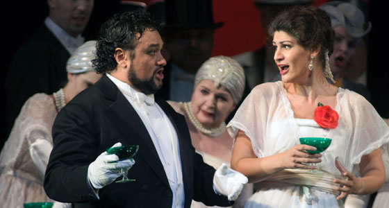 Como digo más arriba, Anja Harteros canceló y en su lugar fue la italiana María Agresta quien se hizo cargo del personaje de Violeta. Antes de nada hay que empezar por decir que la joven Maria Agresta ha obtenido un importante triunfo en su actuación. No es tarea fácil sustituir a una cantante como Anja Harteros, quien, además, es con toda justicia un auténtico ídolo en Munich. A la italiana no le ha faltado coraje para superar las dificultades y ha conseguido salir triunfante de la prueba. Había tenido ocasión de verla hace un mes en Valencia en la Leonora del Trovador y la impresión fue muy positiva, aunque me pareciera que ella es una soprano puramente lírica y no una soprano spinto. Tras ver su Violeta, me reafirmo en lo dicho entonces. Su voz es muy bella, con un timbre oscuro muy atractivo, que no la convierte en algo por encima de una soprano lírica, una técnica irreprochable, buena expresividad y fácil a lo largo de toda la tesitura, incluyendo el MI sobreagudo de Sempre libera. Estamos ante una soprano que puede tener un importante recorrido, si cuida su repertorio y creo que hoy está en disposición de hacerlo y declinar ofertas de roles pesados que, sin duda, le llegarán. Confío en que por su bien y por el de los buenos aficionados evite roles como Odabella o Norma, que ha cantado en el pasado. Hoy por hoy es una magnífica Violeta, Mimí, Liú o Micaela. Hay que reconocer que Helga Schmidt se ha apuntado un tanto importante al hacer debutar a María Agresta en España. Apuesto a que la veremos antes en Barcelona que en Madrid.