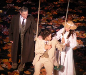 Simon Keenlyside con Jonas Kaufmann, la hermana de Alfredo y el columpio.
