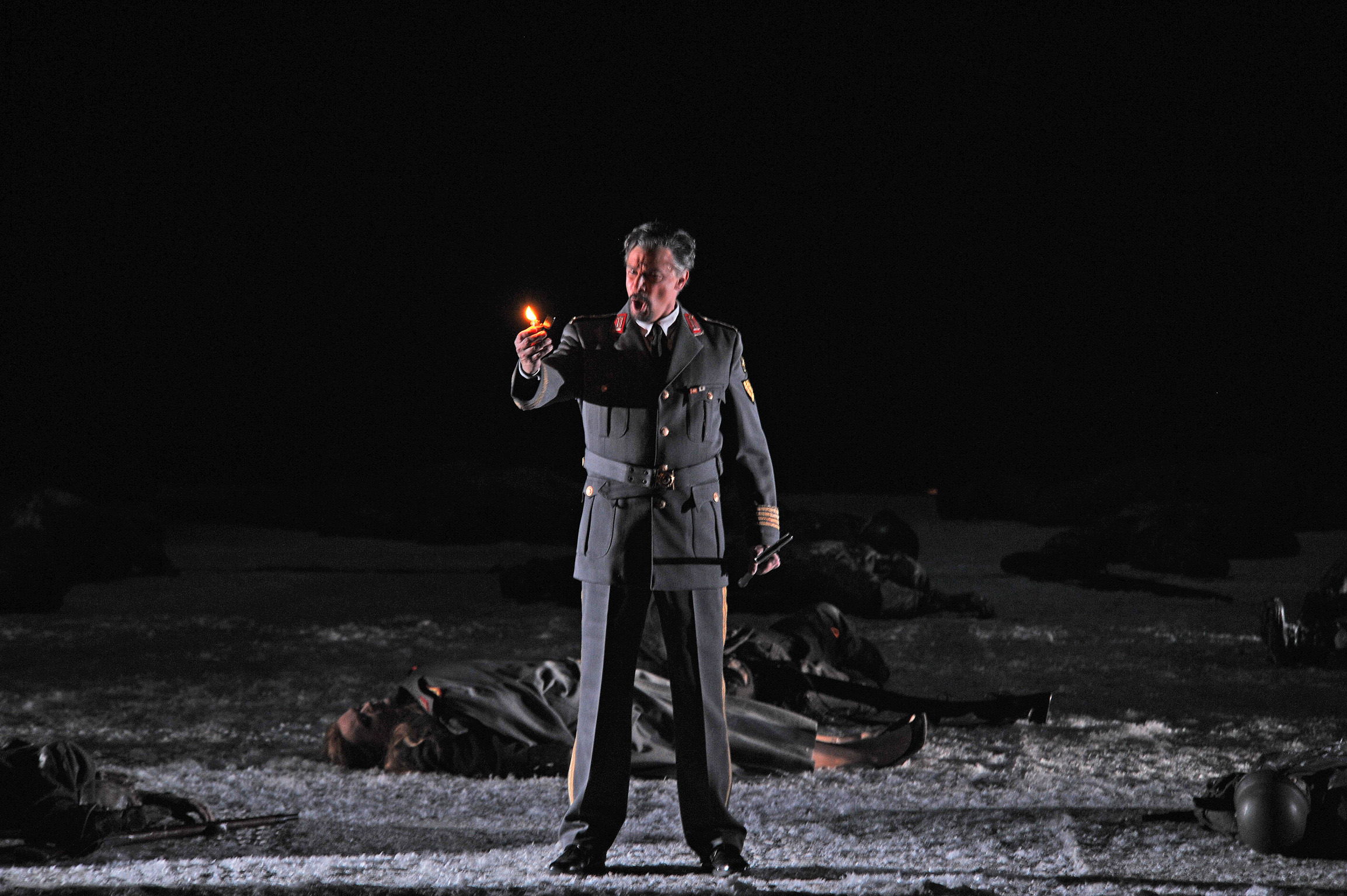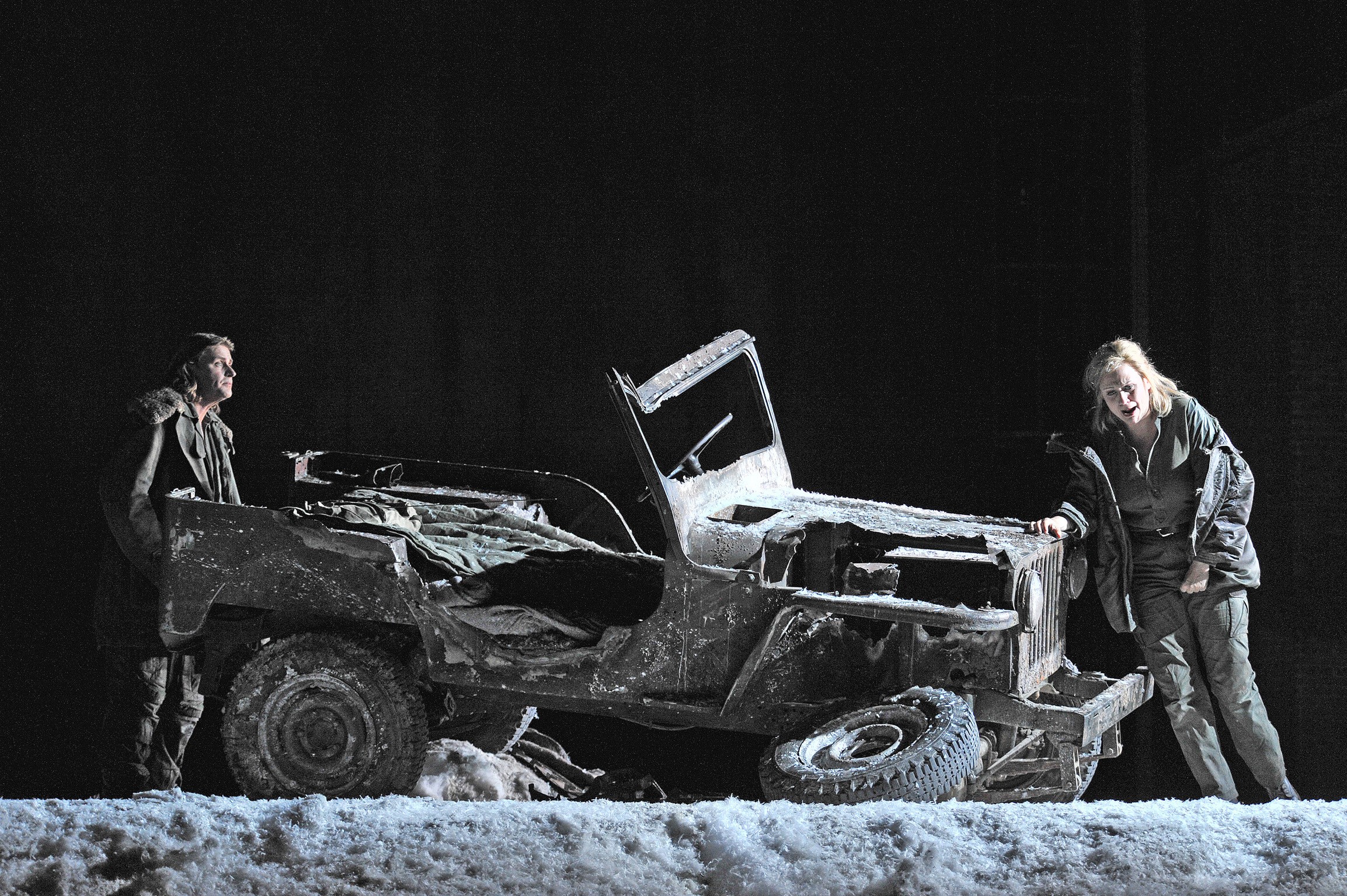 Pocos trabajos escénicos requieren tanto un hilo conductor – un concepto, si quieren – como el Anillo del Nibelungo. El año pasado, en Das Rheingold, Robert Carsen parecía ofrecer como hilo conductor la ecología y los egoísmos humanos que llevan a la destrucción del planeta. Las escenas del Rhin, convertido en un estercolero, lo ponían claramente de relieve. Sorprendentemente, en esta segunda entrega del Anillo el mencionado hilo conductor parece haberse roto y en su lugar no encuentro ninguna idea digna de ser destacada. Estamos ante una producción bastante tradicional, salvo el hecho de que la acción se desarrolla en tiempos modernos. Robert Carsen nos ofrece un mundo con bandos enfrentados, donde Hunding y sus huestes parecen formar parte de un ejército o de unas fuerzas armadas irregulares, desarrollándose el primer acto en el campamento de Hunding, donde la nieve cae al fondo, incluso cuando Siegmund y Sieglinde cantan la llegada de la Primavera. En el segundo acto estamos en una sala lujosa de lo que puede ser una Dictadura Militar en Cetroamérica, con Wotan como