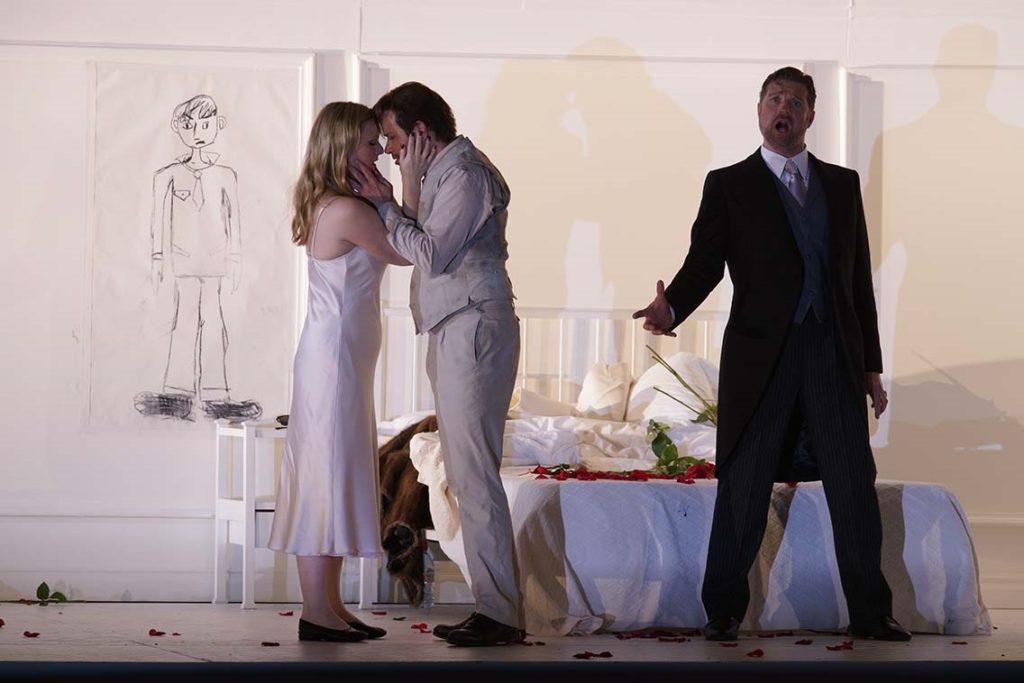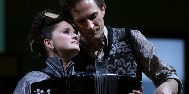 Sobre cuatro relatos del escritor uruguayo Juan Carlos Onetti (1909-1994), Matthias Rebstock , junto a la propia compositora, ha pergeñado un libreto operístico que él mismo pone en escena, también conjuntamente con ella, y que sitúa en la mítica ciudad de Santa María, o más bien contra ella, ya que se trata de un espacio cerrado, un Huis Clos sartriano, fuera del cual está el infierno de las mentiras y dentro la fantasía de cuatro mujeres protagonistas de las que sólo dos son cantantes, las otras, una acordeonista y una violista. A partir de ahí la inteligibilidad y lo que queda de Onetti depende de la habilidad de los creadores y de cómo la reciba el público, porque las historias se entrelazan recurrentemente , divergen y convergen, se mezclan y no se trata tanto de entenderlas como de asumirlas intelectualmente. La escena se basa en una escenografía en varios planos de Bettina Meyer que es muy eficaz como lo es el vestuario de Sabine Hilscher. Las dos cosas crean ambiente y subrayan época. No nos hallamos ante una narración lineal porque deliberadamente los autores pretenden conducir a los espectadores por un tupido laberinto en el que siempre debe haber un infalible hilo de Ariadna: la música que, al fin y al cabo es la sustancia de la que se nutre el género desde sus inicios.