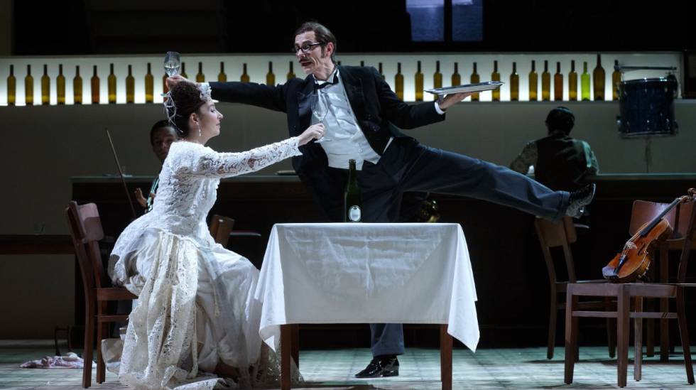 En rigor, este espectáculo se rige por las reglas del teatro musical de vanguardia, la huella de Kagel no está lejos. Hay momentos memorables en este sentido, como los juegos de percusión de la partida de dominó o el impagable camarero, cuyo aire chaplinesco en el número de poner la mesa resulta magistral con la complicidad de unos músicos en los que se huele el trabajo de taller. Pero hay no pocos momentos tediosos, quizá resultado de un a priori respecto a una historia que se hace larga desde la óptica de la deconstrucción más absoluta. Además, que en hora y media apenas se canten unos minutos tiene algo de provocación en el “reaccionariado” del Real. Este espectáculo, programado en el Festival de Otoño habría seducido. Pero el Real…
