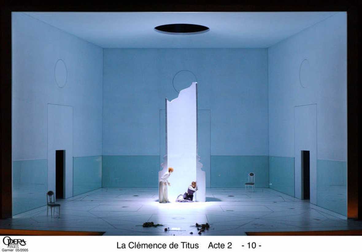 …El Teatro Real invita al ejercicio reprogramando «La clemenza di Tito» en la producción diseñada por Ursel y KarlErnst Herrmann, estrenada en el Festival de Salzburgo en 1982 y repuesta aquí en 2012. La trajo su promotor, Gerard Mortier, quien tenía un especial afecto por la obra y por esta escenificación, de ahí que todo sirva de pretexto para dedicarle estas representaciones…