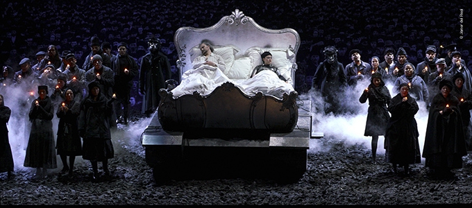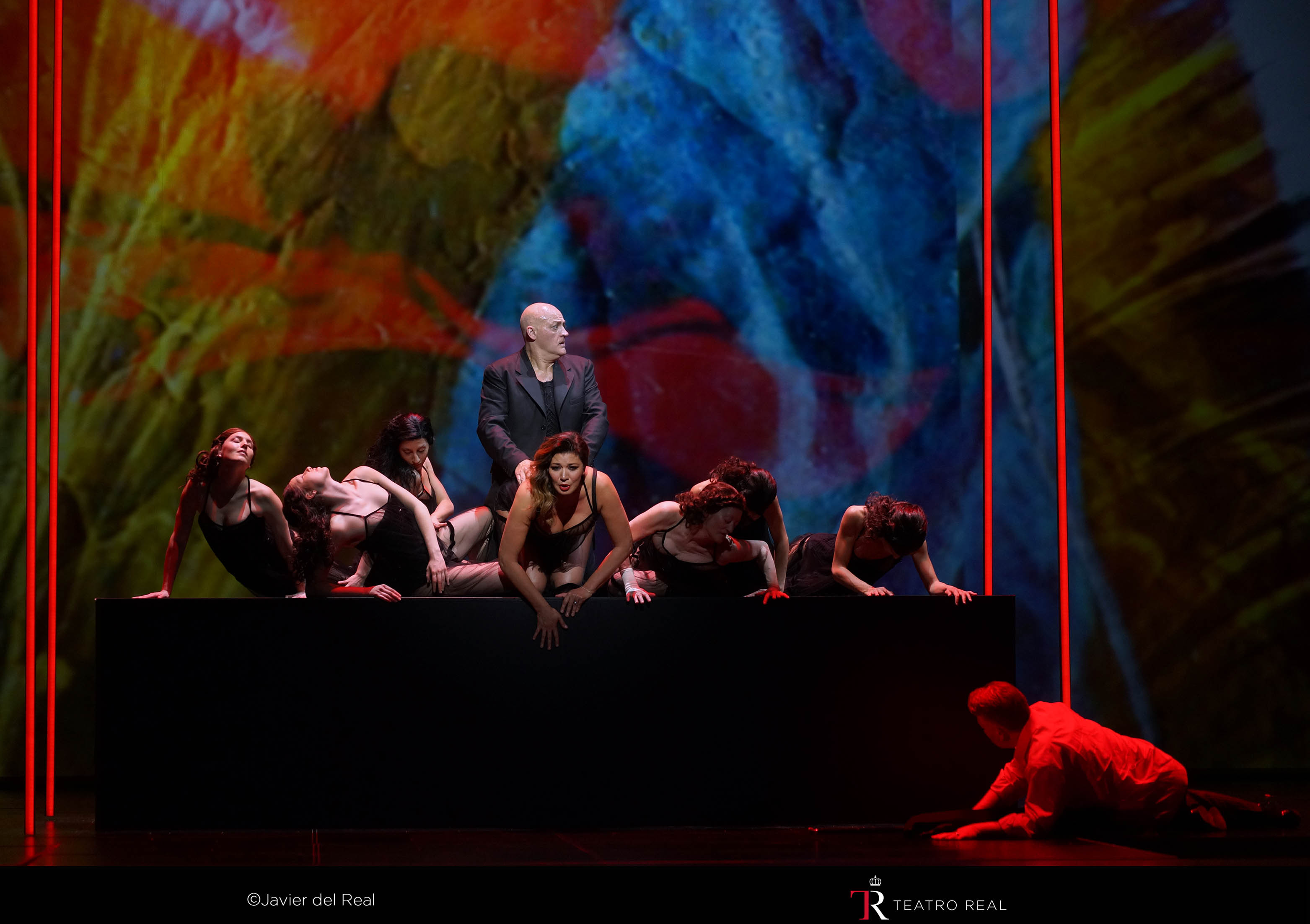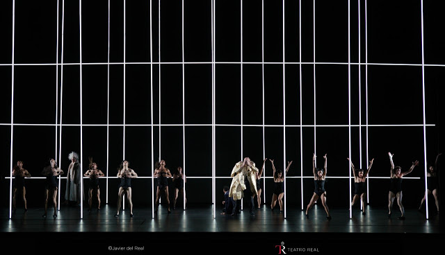 Para la producción del Real, Pierre Audi no ha seguido el esteticismo de Mújica sino una puesta en escena basada en escenografía e iluminación de Urs Schöenbaum, vídeo de Jon Rafman y vestuario de Wojciech Dziedzic que resulta atormentada, casi claustrofóbica, pero que realza los valores musicales, más que los literarios, de la obra. Se traduce bien su opresión pero también la belleza enigmática de esos monstruos –físicos y morales– que, como en Goya, produce el sueño de la razón. Hay una extraña pero atrayente mezcla de expresionismo y minimalismo, con paneles oscuros, vídeos y misteriosas luces led.