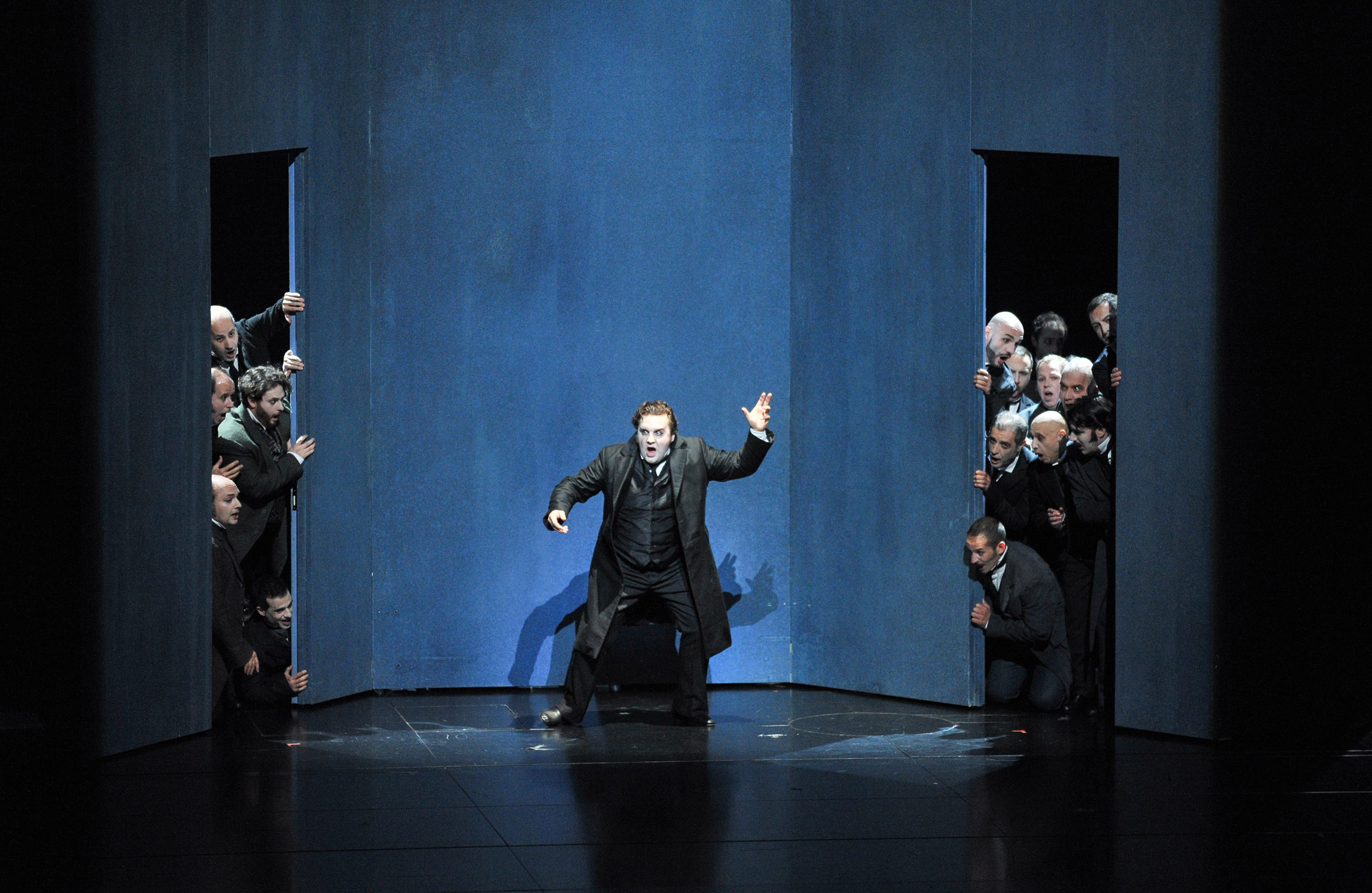 La dirección musical estuvo encomendada al francés Stéphane Denève, cuya lectura me resultó adecuada y hasta buena, salvo algún exceso de volumen. A sus órdenes tuvo una buena actuación de la Orquesta del Liceu, que parece estar mejorando respecto de pasadas temporadas. Supongo que se empieza a notar la mano de su titular, Josep Pons. Musical y escénicamente, intachable el Coro del Liceu, uno de los grandes pilares de este teatro.