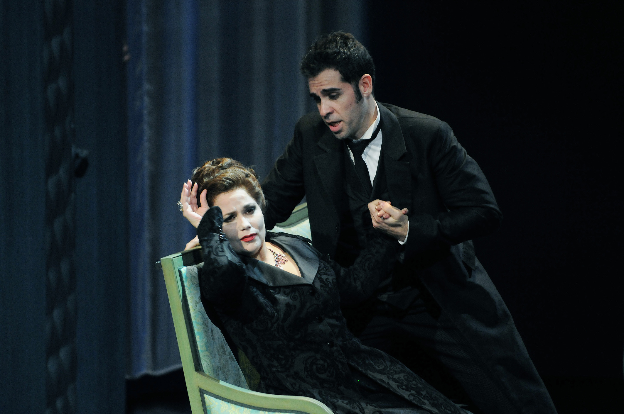 Estas representaciones ofrecían inicialmente una única soprano para los tres personajes femeninos – cuatro, si añadimos el episódico de Stella -. En el primer reparto se anunciaba a Natalie Dessay y en el segundo a la cubana Eglise Gutiérrez. Ya comenté hace un par de días que la francesa decidió abordar únicamente la parte de Antonia. Eglise Gutiérrez renunció a Olympia, cantando únicamente las partes de Antonia y Giulietta. La verdad es que no me extraña, ya que no veo por dónde puede salir bien parada esta soprano en el personaje de la muñeca, como tampoco del de la cortesana, cuya tesitura le queda muy grave, resultando forzada y casi inaudible. Para Antonia resulta más adecuada, pero tampoco es una intérprete ideal, aparte de algunas medias voces de calidad, ya que su instrumento pierde armónicos cada vez que la tesitura asciende. Unas veces tiene dificultades en las notas altas y otras, en cambio, las resuelve bien. No deja un gran recuerdo