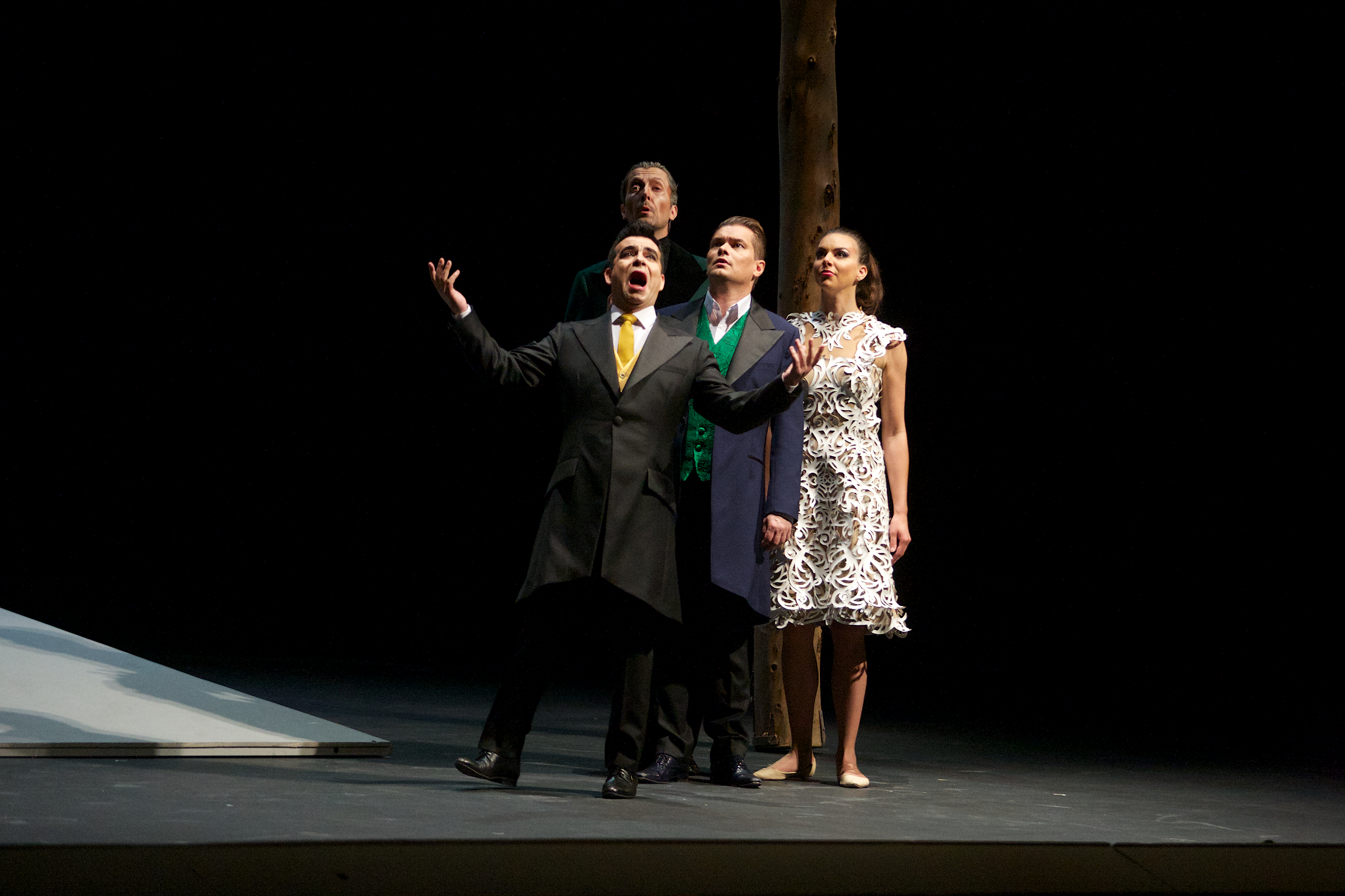 La única duda del público, que hacía temer si todas las ilusiones se vendrían al traste, se centraba en el retraso con que se ha dado a conocer el reparto. Nada más lejos de la realidad: el resultado global en este punto ha sido encomiable. Empezando por la pareja central, encomendada al tenor finlandés Tuomas Katajala y la soprano dramático-coloratura canadiense Ambur Braid. Katajala, un todoterreno cuya horquilla va desde Mozart y el belcantismo hasta Puccini pasando por Wagner, debutaba el papel del protagonista, Tom Rackwell, que de aquí a un año volverá a cantar en la Ópera Nacional de Helsinki. Por su parte, Ambur Braid ha sabido trasladar la experiencia de sus habituales Lucias, Violetas o la Reinas de la noche para su primera y personal Anne Truelove, con momentos de especial intensidad como en las agilidades del Oh, God, protect dear Tom!, que cierra el primer acto.
