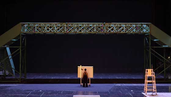 La producción es la conocida de Richard Jones, que se estrenara en este teatro en el festival de Julio de 2009, con la presencia al frente de reparto de Jonas Kaufmann y Anja Harteros. Ya en su estreno esta producción levantó una auténtica polvareda y el día del estreno el director de escena británico Richard Jones fue sonoramente abucheado, lo que ya no volvió a ocurrir, porque nunca más ha salido a saludar en las reposiciones que se han visto en Munich. Lo que nos ofrece Richard Jones es una visión personal, cuyo engarce con libreto y partitura es prácticamente inexistente.