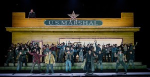 La dirección de escena no ofrece nada destacable. Jack Rance es un malvado desde el principio, resultando difícil de entender que a este personaje le hubieran nombrado Sheriff. Los otros dos protagonistas son los vistos en tantas ocasiones anteriores. La dirección de masas resulta bastante infantiloide. Cuando hay que sacar las armas, todos las sacan a la vez, y las carreras de los figurantes alrededor de la oficina del sheriff eran más bien patéticas. La salida del escenario de Minnie y Dick Johnson al final de la ópera casi me hizo añorar el globo que ponía en escena Marco Arturo Marelli en La Fanciulla del West de Viena.