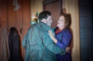 La protagonista Minnie era la soprano británica Susan Bullock, que me resultó poco adecuada tanto escénica como vocalmente. Susan Bullock está ya en la cuesta debajo de su carrera y no parece que a sus 56 años pueda dar credibilidad escénica al personaje de Minnie, que – según el libreto – está todavía por dar un beso de amor. A eso todavía habría que añadir que no podía ocultarse en escena que era claramente mayor que su amado Dick Johnson. Susan Bullock nunca tenido una voz muy atractiva, aunque la cosa no llama excesivamente la atención en el centro, pero las notas altas son siempre abiertas y gritadas, además de inestables.