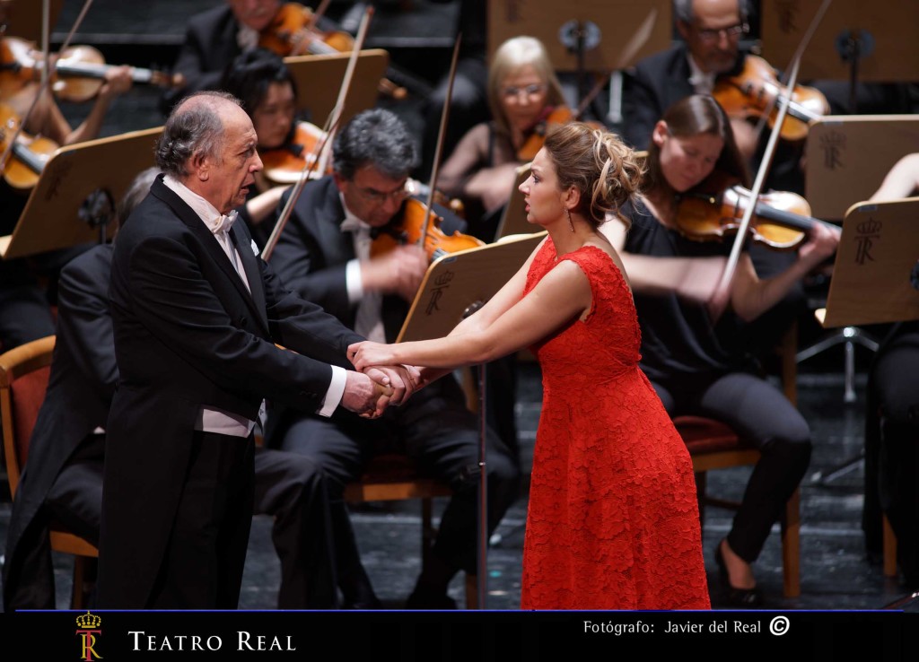 En la temporada 2005/6 se ofreció escénicamente en el Real “Luisa Miller” con un reparto de campanillas: Cedolins, Alvarez, Frontali, Prestia, Fiorillo, etc y la dirección de López Cobos. Once años después vuelve en versión de concierto y, para ser sinceros, no se ha echado de menos la escena. Los mismos intérpretes diseñaron unos movimientos más que suficientes para hacer entendible el drama y tuvieron el acierto de no contar con sillas ni partituras en el escenario. La muerte de Luisa quedó perfectamente simulada con la soprano agarrándose a las barras de seguridad del podio del director. ¡Cuántas veces preferiríamos algo así a tremebundas escenografías! Y es que allí estaba el genio de un Verdi, algo primerizo sí, pero ya a dos años vista de la gran trilogía con el frasco de las esencias propias abierto a pesar de sus muchos perfumes donizettianos. Así los coros –estupendamente cantados- que recuerdan a aquellos de las escenas de locura de las tres reinas Tudor y muchas melodías de Luisa o su padre Miller. La primera aria de la protagonista, de coloratura, abre un papel mucho más difícil de lo que parece. Uno se pregunta durante la primera hora de la ópera por qué su título, pero la cosa queda clara con segundo y tercer acto. Los últimos cuarenta minutos de la soprano –entre Gilda y Traviata- son un auténtico tour de force, con el tan verdiano dúo con su padre, con el tenor y la preghiera.
