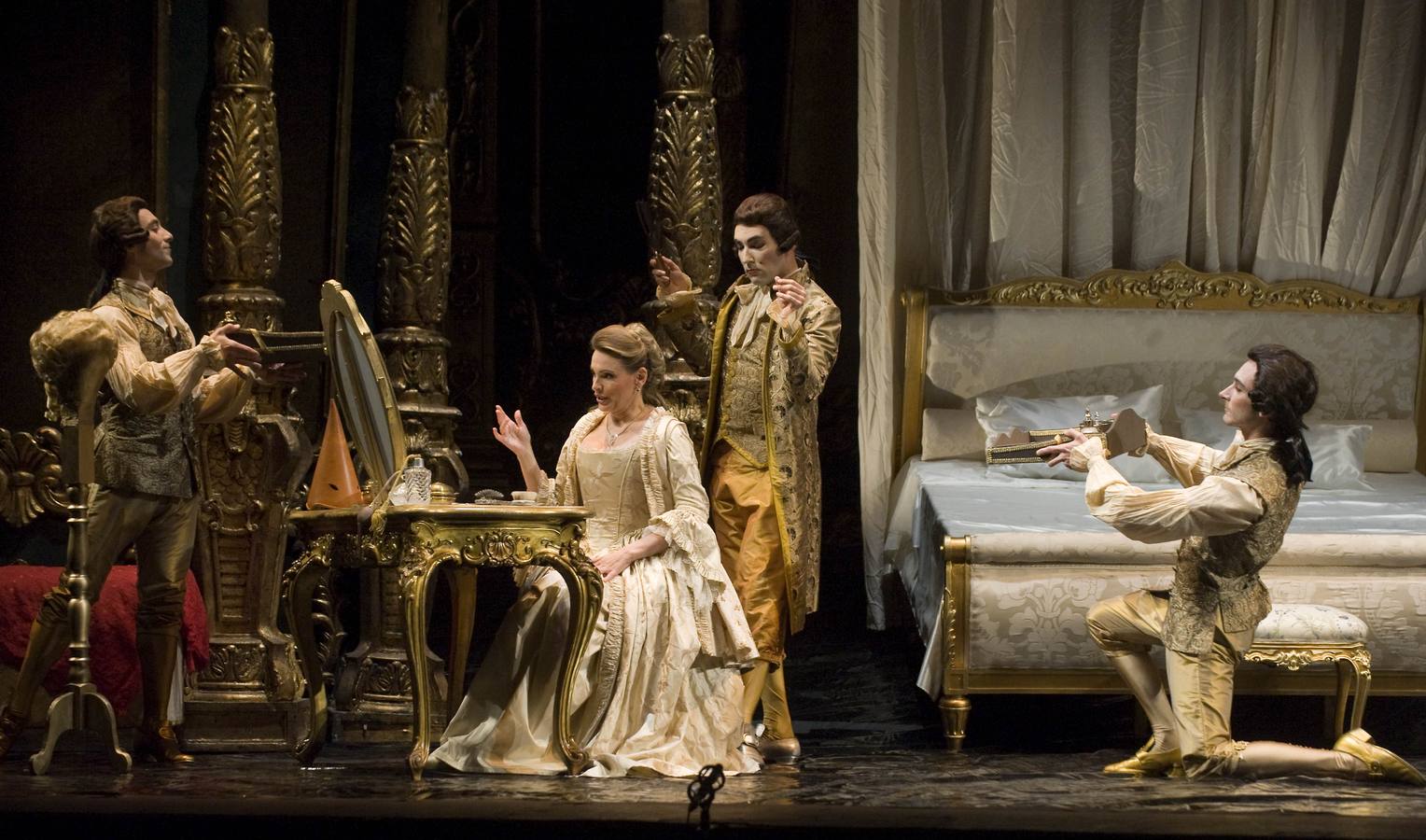 La voz de Ainhoa Arteta ha ensanchado y ganado tanta proyección como para pasar de la “Manon” de Massenet a la de Puccini. Aún hoy quizá logre, en hecho infrecuentísimo, simultanear ambas. No podrá ya después de incorporar a su repertorio “Adriana Lecouvreur” y “Tosca” el año próximo. Las sopranos acaban aburriéndose de los papeles de las ligeras y algunas, como Renata Scotto o la misma Arteta, tienen la suerte de que sus voces crezcan y puedan incorporar roles con mayor sustancia dramática. Manon apenas tiene dos escenas exigentes vocalmente, en los actos segundo y cuarto, pero ambas con enjundia. La voz de Ainhoa, en una interpretación con carácter, logró traspasar el foso y llegar a todos los rincones, le echó arrestos a agudos y fortes y dejó pasar por alto algunos graves para no forzar. Muchos más problemas presenta la escritura de la parte del tenor, siempre en escena y con un tercer acto en punta en el que siempre existe el riesgo del desfondamiento. Walter Fraccaro aguanta bien y aporta seguridad, pero roza la monotonía a causa de la escasez de colorido tímbrico y dinámico. Es lo que le ha impedido la gran carrera, porque resuelve pero no entusiasma. Correcto, sin más, el Lescaut de Vittorio Vitelli y también los secundarios, con mención especial para el trabajo de Andrés Veramendi.