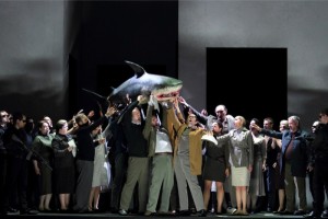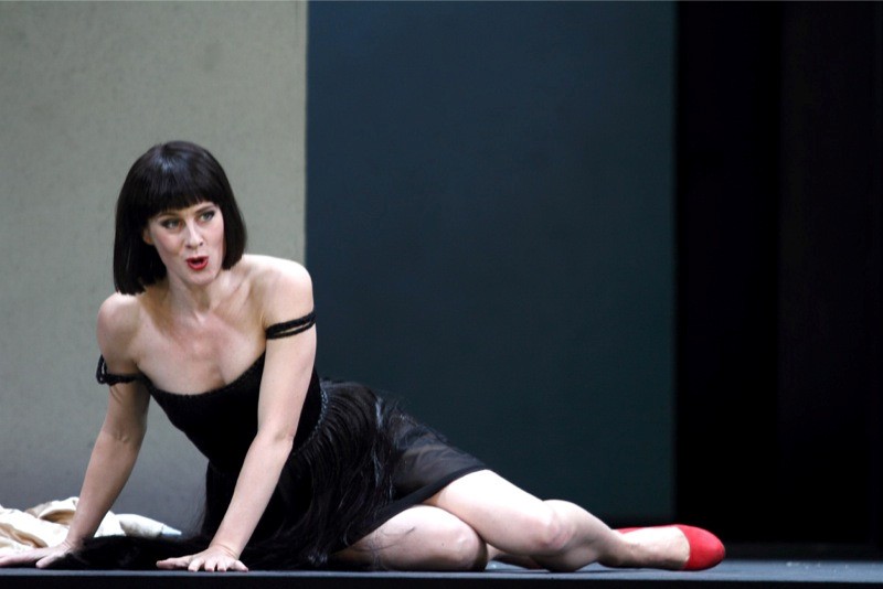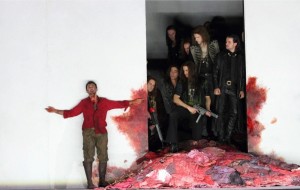 mientras Idomeneo está haciendo la guerra. Al regreso del Rey, el Gran Sacerdote le exige el sacrificio de Idomeneo por haber liberado a los presos troyanos. Que el libreto diga otra cosa, nada tiene que ver. ¿Recuerdan lo de l’aria dicea Giannina ma io dico Rosina? Pues eso. Posteriormente, los liberados troyanos se rebelan contra los cretenses y destronan a Idomeneo para colocar por la fuerza en el trono a la troyana Ilia e Idamante. Ni oráculos, ni monstruos marinos mandados por Neptuno. Simplemente, la revolución. La escena final de Idomeneo, dando gracias a los dioses y pidiendo a su pueblo que obedezca al nuevo rey Idamante, es patética, ya que el pueblo pasa por encima de Idomeneo, absolutamente derrotado por los acontecimientos. Dicha escena termina en un himno de alegría, Scenda amor, scenda Imeneo, que aquí no tiene ni el más mínimo sentido. Como último toque ridículo, Martin Kusej nos ofrece a Arbace, el confidente del Idomeno, como uno de esos rotos que hay por las calles pidiendo limosna, aquí con acordeón al hombro. Uno acaba por entender que lo destronen. Simplemente, por tonto.