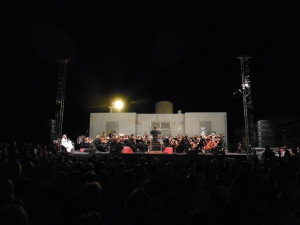 Con este fin Vladimiros Symeonidis, fundador del grupo de cámara Contra-Tempo e invitado habitual de las mayores orquestas del país, se puso al frente de los músicos tesalonicenses. Formado con Uros Lajovic, discípulo de Swarovski, en Viena, ciudad cuyos escenarios frecuenta con asiduidad, Symeonidis optó para la ocasión por un programa popular por el que, tras abrir con la Wassermusik de Handel, fueron desfilando páginas conocidas de Mozart, Bizet, Smetana, Tchaikovsky, Mendelssohn y Rimsky-Korshakov. El primer gesto de generosidad de la noche llegó de la mano de Rossini y adoptó forma de lluvia: gotas aisladas, que si bien obligaron a dejar cerrados en los atriles los pentagramas de la obertura de Guillermo Tell prevista para el cierre, consiguieron rebajar algunos grados a la temperatura, haciendo más llevadero el terrible peregrinar de los prósfigues, como aquí los denominan, cuyos rostros reconocen como familiares.