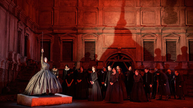 Cada vez que volvemos sobre esta ópera sucede lo mismo: sobrecogimiento, estupefacción ante el despliegue musical, emoción por lo extremo de las situaciones. Es una de esas ocasiones en que se conjugan un libreto de sin par belleza poética con una música de un nivel de inspiración irrepetible. No es de extrañar, pues, que con los cantantes adecuados, sea un éxito seguro en cualquier teatro.En un principio, si nos atenemos exclusivamente a la literalidad del libreto (hipotexto), puede chocar el que se hable de romanos, galos, sacerdotisas y druidas mientras que contemplamos una escena ambientada en el siglo XIX, con polisones, crinolinas, charreteras y bersaglieri. Pero Nicola Berloffa ha querido superar esa literalidad y mirar el drama con los ojos de quienes lo vieron en la época de su estreno, desde la perspectiva de una Italia que anhela su unidad y su independencia de fuerzas opresoras. Adquiere así sentido este segundo plano de significación (hipertexto), estableciéndose así una serie de interesantes relaciones de intertextualidad que dan coherencia a la propuesta escénica, con ese palacio renacentista bombardeado y esos italianos suspirando por expulsar a los invasores de la tierra patria. Con la ayuda de un soberbio vestuario y una iluminación muy corpórea (bellos efectos de sombras, luz filtrada por las ventanas apuntaladas) y con una dirección de actores muy cuidada, esta Norma se hace más actual que nunca. Máxime con ese final aún más trágico, en el que la muerte en la hoguera de Norma y Pollione es sustituida por la furia vengadora del pueblo, a modo de Euménides vindicadoras.
