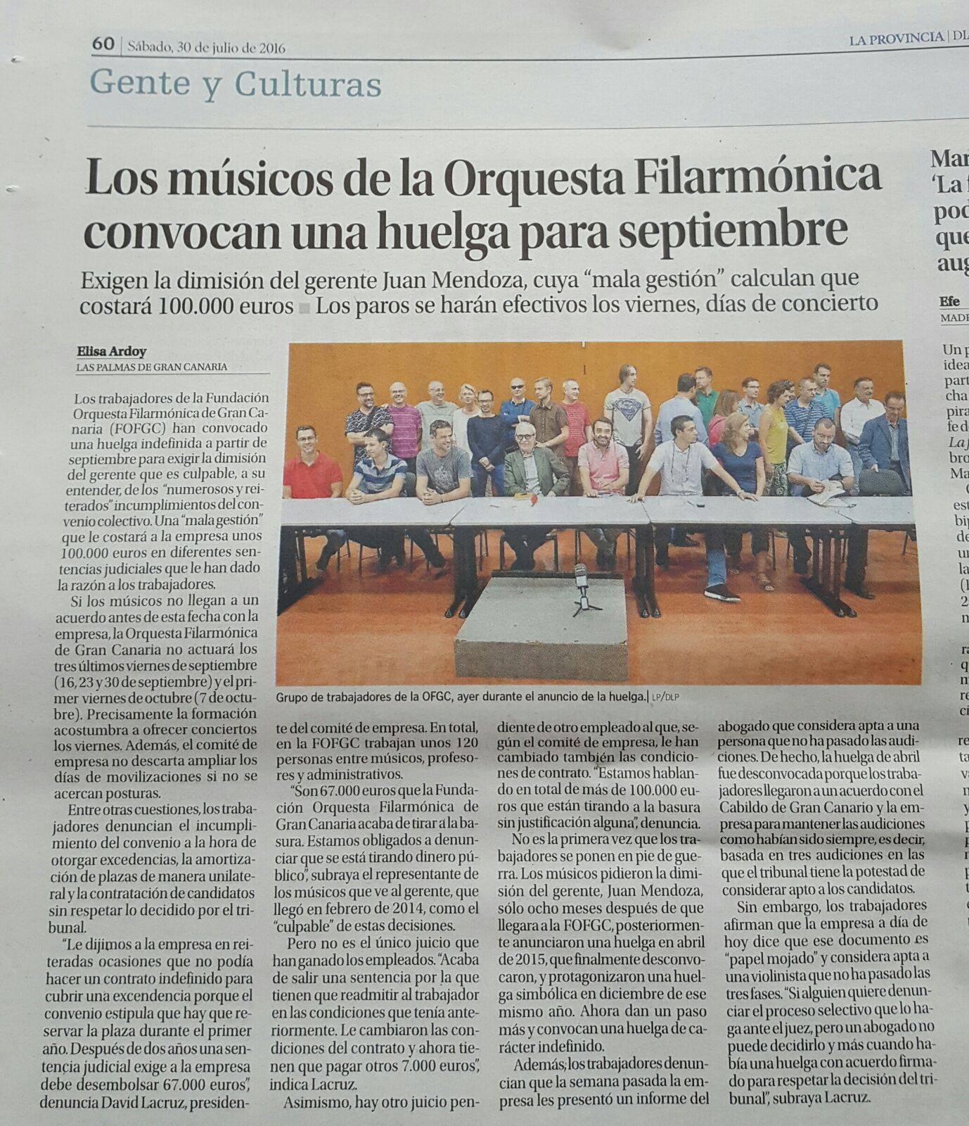 LA PROVINCIA: Los músicos de la OFGC convocan una huelga para septiembre