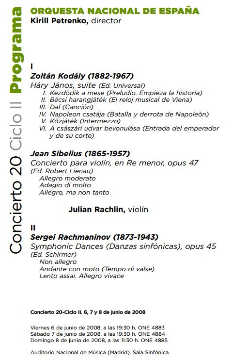 Kirill Petrenko pasó tan inadvertido por Madrid con la ONE en junio de 2008 como Anna Netrebko en su día por el Teatro Real en “Guerra y paz”. Dirigió el “Concierto para violín” de Sibelius con Julian Rachlin y las “Danzas sinfónicas” de Rachmaninov. No salió una sola crítica en prensa nacional y, lo que es aún más raro, nadie en la ONE se acuerda de él. De hecho se sabe que se subió al podio porque lo que sí consta es que se le pagó.