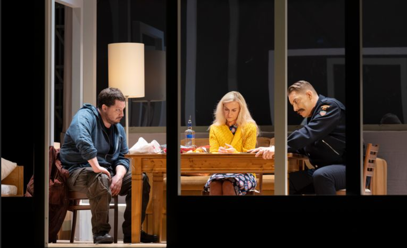 La acción empieza con un vídeo en el que un bandido está escapando de una persecución policial. Y acaba llegando a la casa de Sieglinde (Vida Mickneviciute) y Hunling (René Pape), representado como un oficial que se supone que participaba en la persecución. Muy bien recreada la casa, encontrándose a la espalda del Valhalla, que aquí se sustituye por el centro de investigación ‘E.S.C.H.E.’, algo que guarda coherencia porque de la pared medianera y no de un fresno Siegmund acabará sacando la espada, pero es que esche es fresno en alemán.