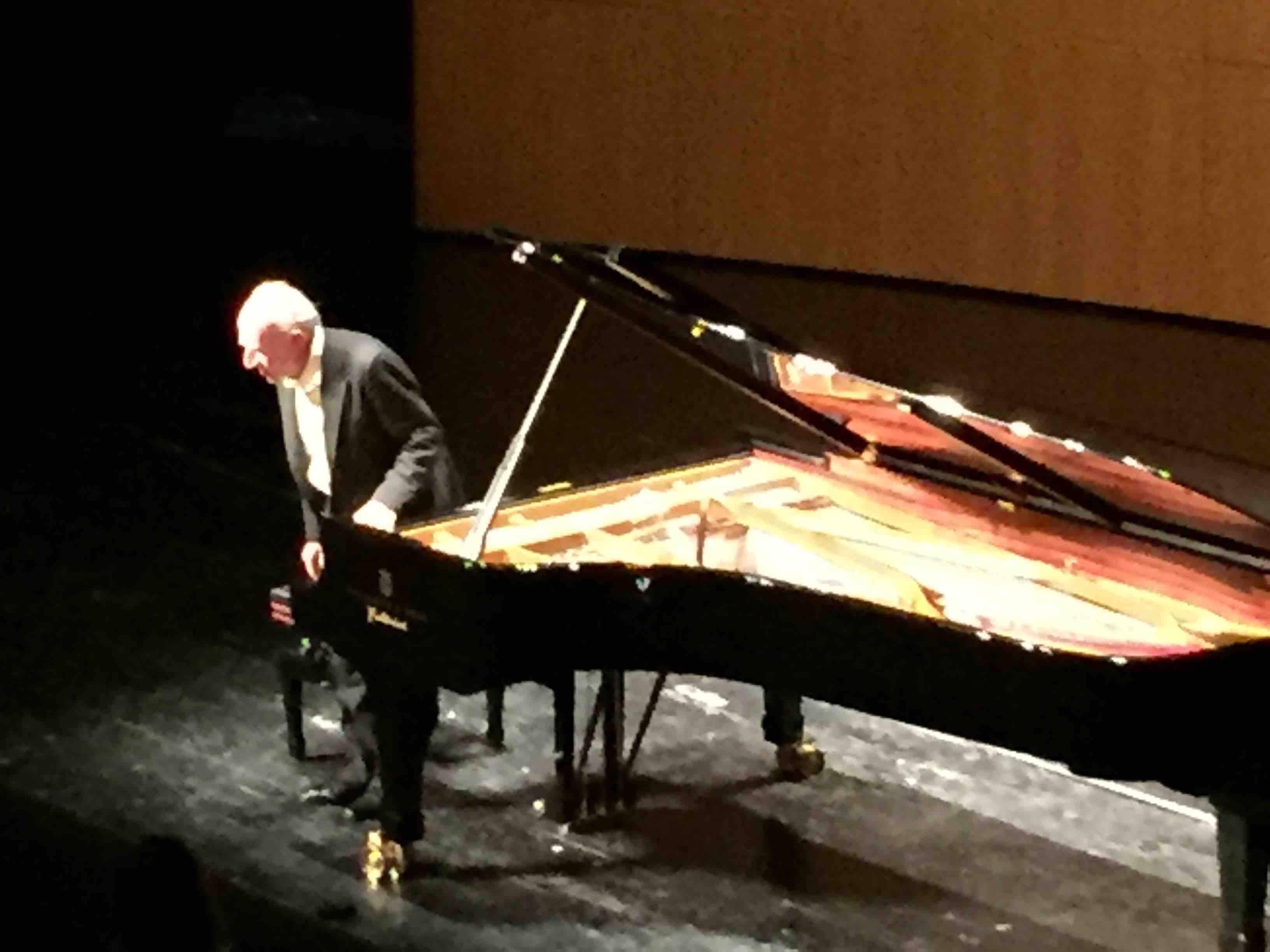 Al artista milanés le trajo la noche de reyes los setenta y cuatro años y, la verdad, le pesan. No sólo al andar, con sus pasos algo torpes y el cuerpo inclinado hacia delante, sino también en sus interpretaciones. Han sido incontables veces las que le he escuchado, desde aquella inolvidable y larguísima en Munich, en sus inicios, cuando nos largó en forma de propinas, uno tras otro, todos los nocturnos de Chopin hasta las más recientes en Salzburgo. No está evidentemente en su mejor etapa, pero siempre hay momentos admirables, nacidos de una intensa introspección. No los hubo sin embargo en la pieza inicial, el “Allegro en si menor, op.8”, en donde su admirada técnica no pudo con el brío de la partitura, faltando claridad en las notas. La “Fantasía en Do menor, Op.17”, interrumpida antes de su final por un público ignorante que en su mayoría acudía sólo por el nombre del pianista, tuvo momentos como en sus mejores tiempos, pero se vio perjudicada por una utilización excesiva del pedal y poco contraste en las dinámicas, algo que perjudicaba el vuelo de la música.
