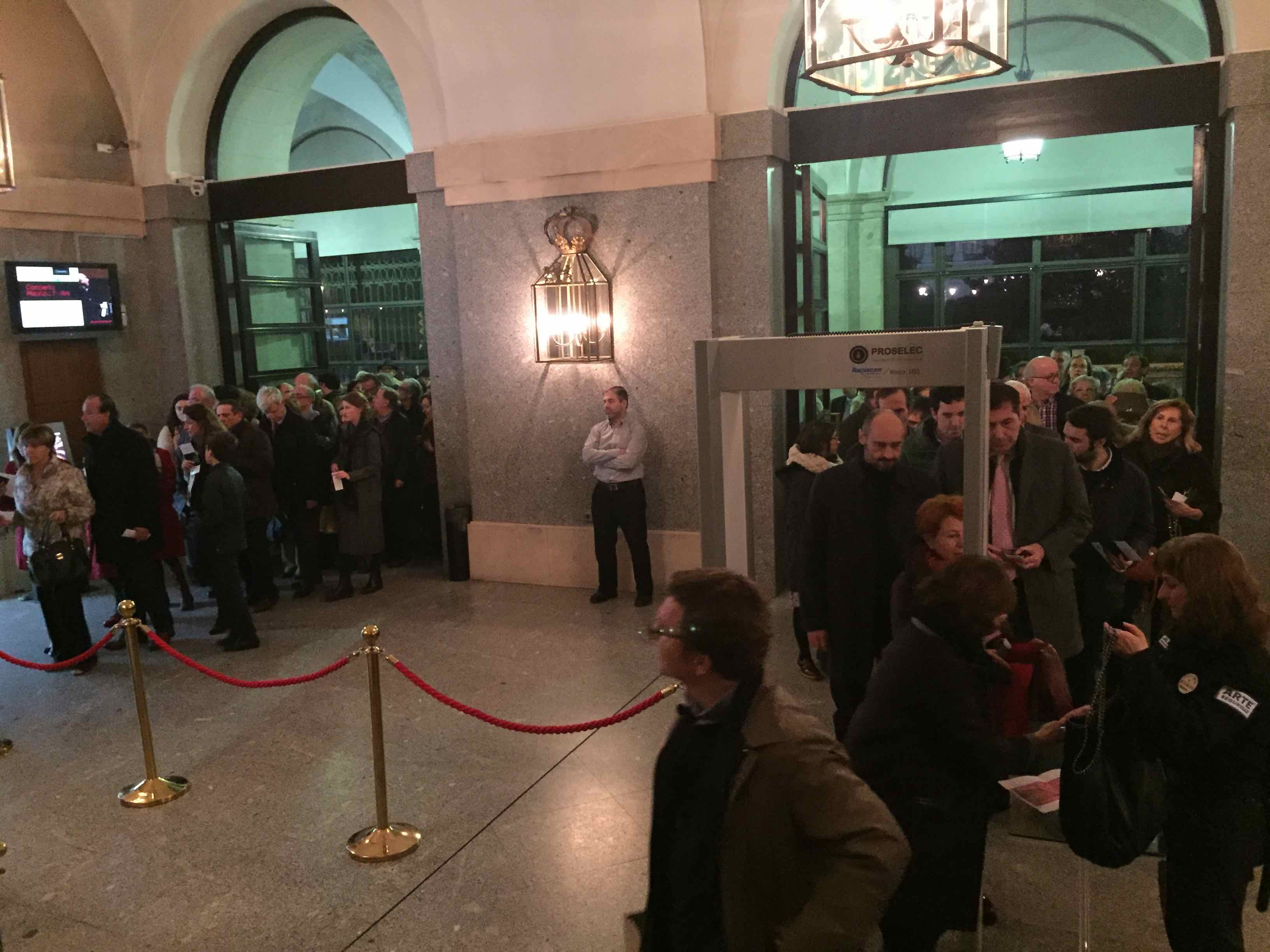Un serio aviso al teatro: no es de recibo que permanezcan cerradas sus puertas laterales y que su acceso se realice tan sólo por tres puertas centrales. Lo peor no son las colas interminables al entrar para pasar los arcos de seguridad, sino lo que puede suceder si un día hay un incidente dentro del teatro. Lo del Madrid Arena se quedaría pequeño, porque todo el teatro está obligado a salir por dos únicas puertas giratorias. ¡Cuidado! Gonzalo Alonso