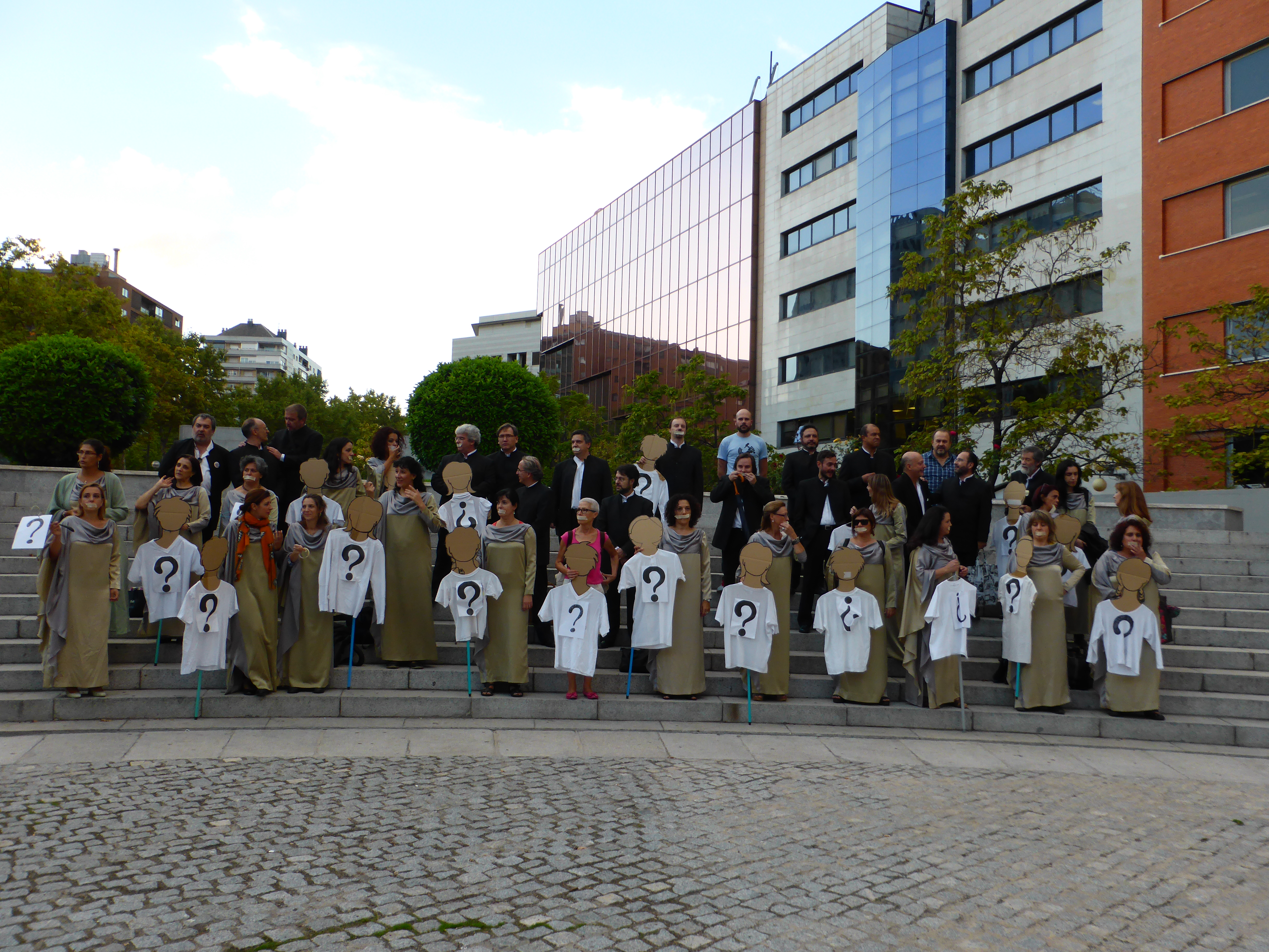 Peor ha sido en esta ocasión, en la que el coro al completo –algunos de sus miembros con la boca sellada con esparadrapo- decidieron apostarse frente a la puerta principal del Auditorio a la entrada del público, ataviados con traje de faena, reclamando sus derechos. Si el director general del Inaem, Miguel Ángel Recio, fue el encargado en la pasada ocasión de presentar disculpas a los asistentes, en esta, la reivindicación de los cantantes se comunicaba a través de la megafonía, que al tiempo anunciaba que sería devuelto el importe íntegro de las entradas. Detalle este último, unido a la falta de interlocutor material, para que el abucheo apenas fuese perceptible en comparación con la vez anterior.