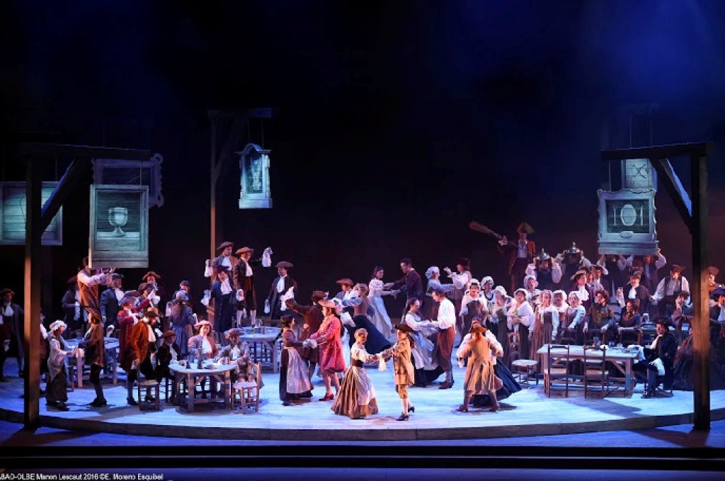 Manon Lescaut fue la ópera que catapultó a Giacomo Puccini a la fama, aunque se trata de una ópera bastante irregular, a la que no ayuda mucho el libreto, del que la paternidad resulta más que confusa, habiendo incluso metido la mano en el mismo el propio Puccini. Se trata de una obra de calidad irregular, porque musical y dramáticamente no levanta el vuelo hasta bien entrado el segundo acto de la ópera. La comparación con la ópera homónima de Massenet es obligada (el mismo Puccini lo hizo), resultando la italiana más vibrante y apasionada en los dos últimos actos, mientras que en los dos primeros me parece más conseguida la del compositor francés. Pocas veces – si es que alguna – he visto al público entusiasmarse con el desarrollo de los dos primeros actos de Manon Lescaut, mientras que pocas veces he visto al público no vibrar en los dos últimos. En Bilbao se ha repetido la historia.