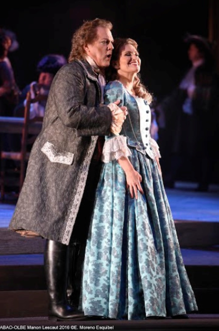 La protagonista era Ainhoa Arteta, que no había vuelto a cantar esta ópera desde la ocasión referida anteriormente de Sevilla en el año 2013. La evolución vocal de la guipuzcoana hace que encuentre su mejor empleo actualmente justamente en el verismo y su actuación resulta convincente en la segunda parte de la ópera. Muchas veces se habla de la necesidad de dos sopranos para cantar la parte de Violeta. Lo mismo se puede aplicar a esta ópera de Puccini, ya que en la primera parte lo adecuado es una soprano lírica, que evoluciona hacia una spinto en los dos últimos actos. Como pasa siempre con las buenas intérpretes de Manon Lescaut, quedan un tanto insípidas en los dos primeros actos. De hecho, se pudo notar en Ainhoa Arteta un vibrato excesivo durante el segundo acto, que hacía tiempo no se lo notaba. Su mejor momento vino en el último acto, en el que cantó con gusto y entrega, en una actuación emotiva por su parte.