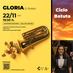 El Ciclo Batuta del Grupo Talía arranca con un programa dedicado a uno de los autores más importantes del panorama coral actual. El concierto, que tendrá lugar el sábado 22 de noviembre, a las 19.30 horas, estará dedicado a la obra Gloria de John Rutter, interpretada por la Orquesta Metropolitana de Madrid y el Coro Talía en un espacio íntimo como es la Sala de Cámara del Auditorio Nacional