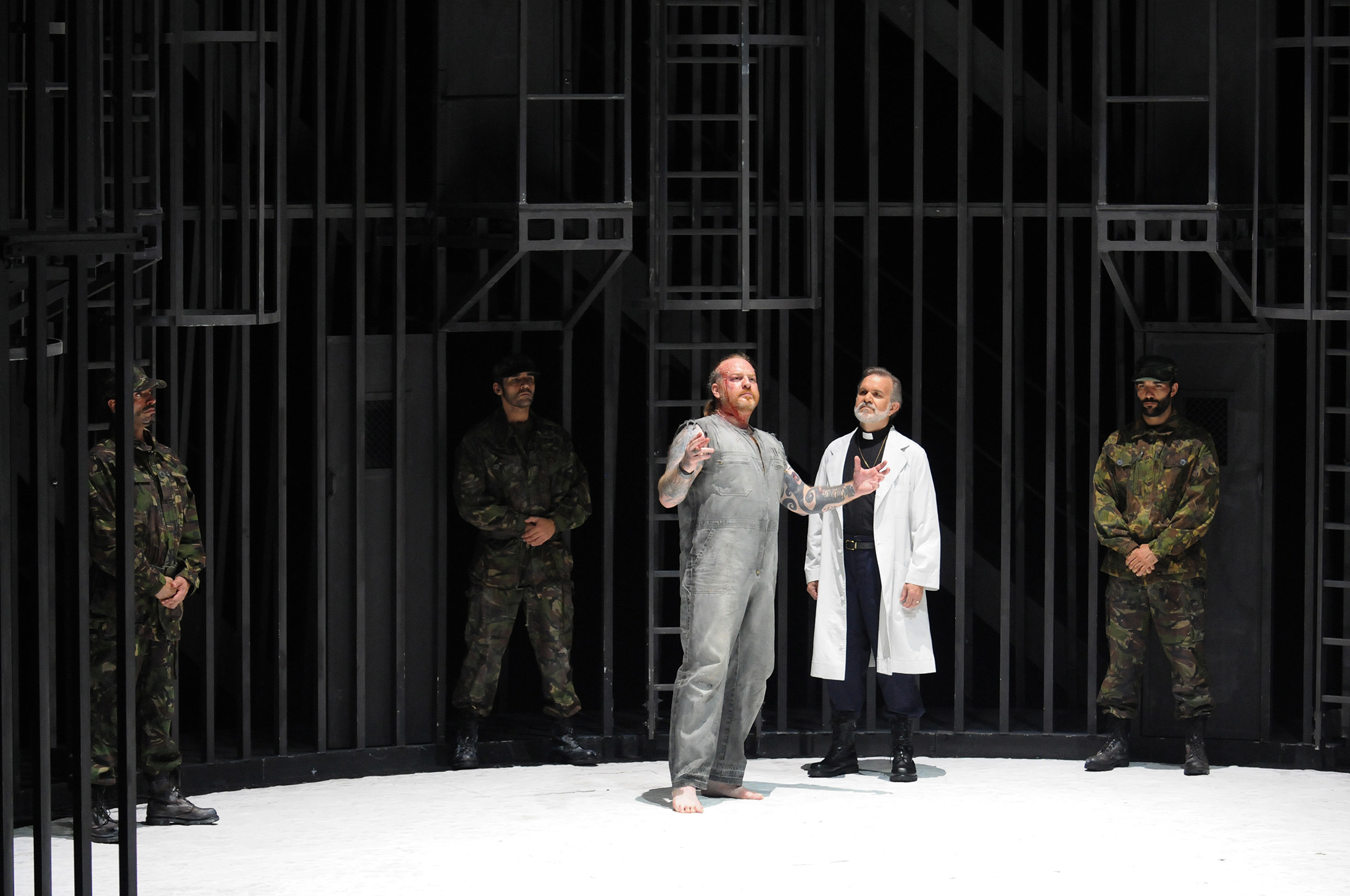 La producción ofrecida se anuncia como nueva y en coproducción con el Teatro Real de Madrid. La idea de ofrecer una escenografía única para ambas óperas no me parece mal, ya que pasamos de la prisión a la clausura, que no deja de ser una prisión, al menos en lo que a Suor Angélica se refiere, que no entra en el convento por su voluntad. El vestuario de Isidre Prunés es muy tradicional y tampoco cabe otra cosa, y hay una adecuada iluminación por parte de Pascal Mérat. La dirección escénica de Lluis Pasqual resulta adecuada, siendo lo mejor conseguido la escena con la Zia Principessa. Buena la idea de colocar al coro de ángeles en el piso superior del teatro.