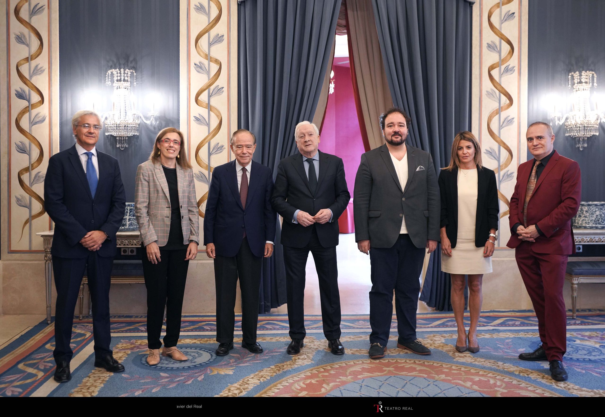 Ignacio García-Belenguer (director general Teatro Real), Inmaculada Martínez Merino (directora general de políticas culturales de la Junta de Castilla y León), Gregorio Marañón (presidente del Teatro Real), Antonio Miguel Méndez Pozo (vicepresidente de la Fundación VIII Centenario de la Catedral), José Miguel Pérez Sierrra (director musical), Piluca Gil (directora general del a Fundación VIII Centenario de la Catedral Burgos 2021) y Joan Matabosch (director artístico del Teatro Real).