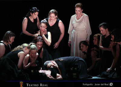 Álvaro del Amo en El Mundo: “Ópera sin ópera”, “Se inicia la temporada del Real con una versión concierto en dos funciones para la que se ha importado una orquesta y un enorme coro. No se entiende por qué el presupuesto (de 400.000 a 1.000.000 de euros, según las versiones), no se ha utilizado en una puesta en escena por la orquesta y el coro del teatro. Interpretada la obra de un tirón, tal vez para evitar la huida del público, fue escuchada con respeto y atención, sometidos los espectadores al capricho, servido de forma esforzada y profesional”.