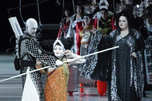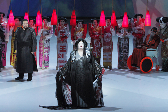 A una producción escénica en ópera hay que pedirle que se ponga al servicio del libreto y la partitura para narrar la historia, usando amplios grados de libertad, pero uno pretende siempre salir del teatro comprendiendo cuál ha sido la idea directriz del responsable escénico y qué ha pretendido decir al espectador. Nada de esto ocurre en la producción de Turandot que nos ocupa. Me llegan noticias de que en el programa de mano Carlus Padrissa habla de que en su trabajo China se ha apoderado de Europa, comprando toda la deuda del viejo continente, y Turandot es la que gobierna en Europa. Siento no poder confirmar esta información, porque mi alemán es excesivamente pedestre para leer las notas de un programa de mano, pero les aseguro que dicha interpretación nada tiene que ver con lo visto en escena.