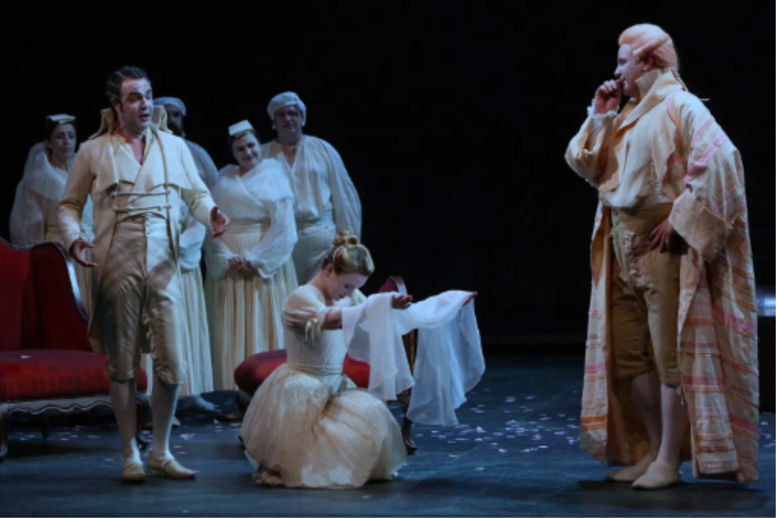 No son pocos los espectadores que consideran que Mozart es un compositor que no tiene muchas dificultades para un director musical. Por supuesto, no comparto dicha opinión. Más bien diría que todo lo contrario. Estas óperas de madurez de Mozart requieren directores destacados. Especialmente, en la ópera que nos ocupa, en la que la ligereza y la alegría son ingredientes fundamentales. La dirección de la china Yi-Chen Lin no me ha resultado convincente, aunque en parte también haya influido la propia posición del foso. Siempre tiendo a pensar que lo que el director nos va a ofrecer en esta ópera nos lo va a adelantar en la obertura. En esta ocasión faltó vida, y alegría, con tiempos un tanto lentos y por ese mismo camino fue el resto de la ópera. Para mi gusto la versión fue un tanto tediosa durante los dos primeros actos, mejorando en el tercero, cayendo nuevamente en el acto del jardín. Hubo siempre control, pero faltó mayor inspiración. Se ofreció la versión tradicional, cortando las arias de Marcellina y Don Basilio. Correcta la actuación de la Orquesta Sinfónica de Euskadi, mientras que me resultó decepcionante la prestación del Coro Easo, de quien recuerdo mucho mejores actuaciones en el pasado.