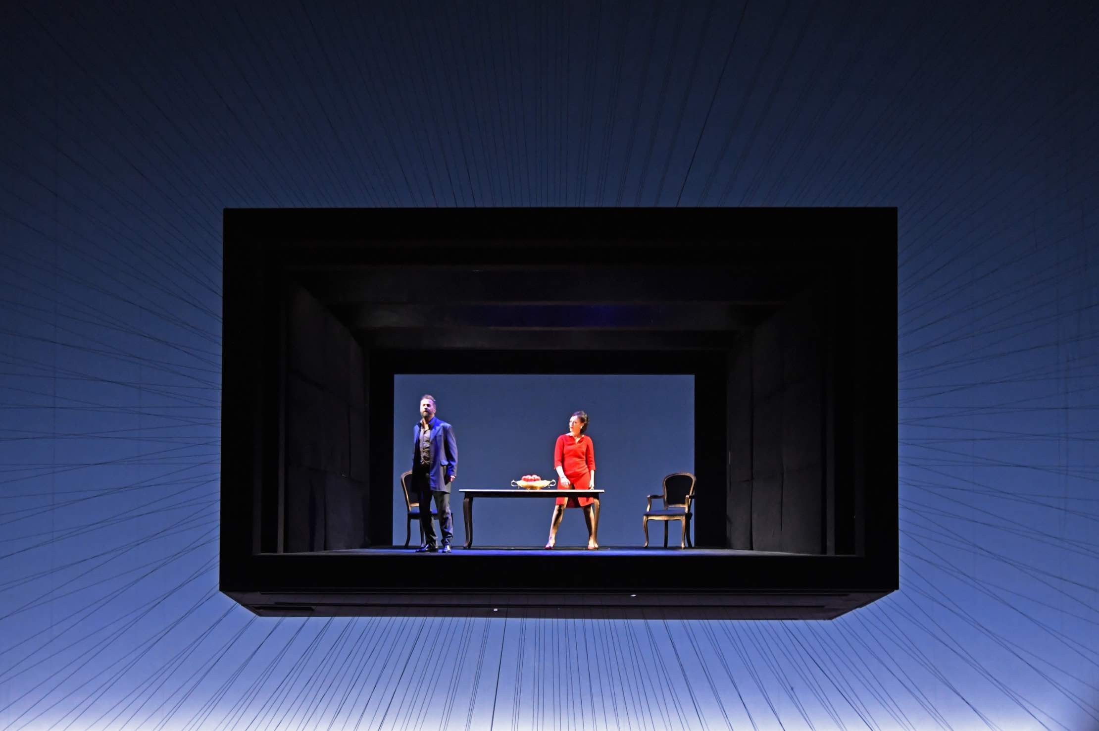 La dirección de escena de Alex Ollé (La Fura dels Baus) está muy bien conseguida, con una dirección de actores estupenda en los dos personajes, que se desdoblan durante la ópera, dando sentido al título de la misma.