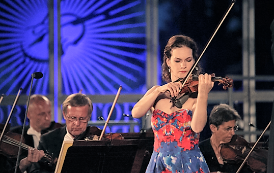 Los conciertos se desarrollan en un muy atractivo marco natural frente al mar, condicionados, claro, por el problema de la lógica amplificación, generalmente bien resuelto, pero no lo suficiente para suplir la acústica reverberante de un espacio cerrado. A pesar de esa limitación pudimos degustar en esta oportunidad de una velada musical de altos vuelos en la que fue estrella la violinista norteamericana Hilary Hahn (1979), artista que siempre se ha caracterizado por una limpieza de arco sensacional, una afinación perfecta, un fraseo conciso y comedido, pero dotado de una tensión interior de alto voltaje. El sonido no es muy grande, lo que se compensa con una espectacular vibración.